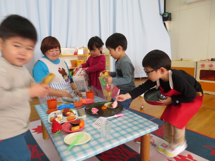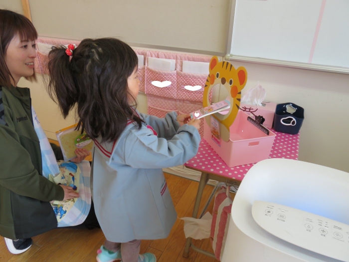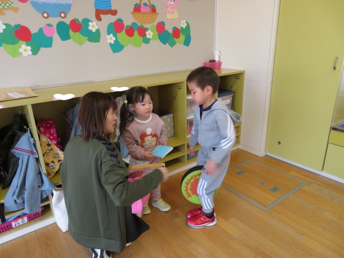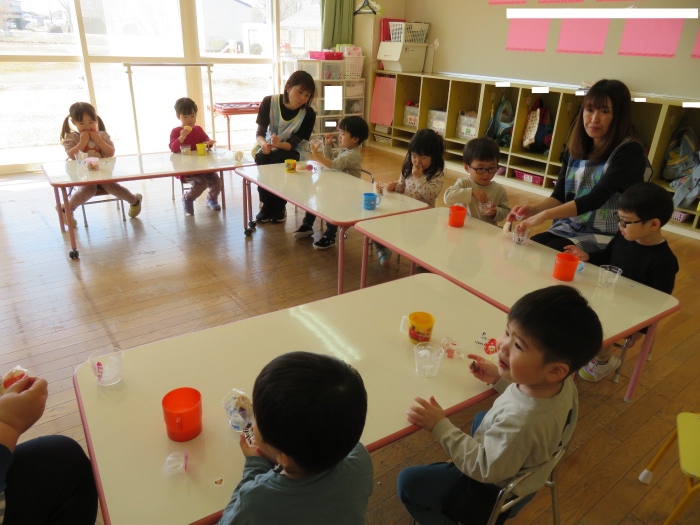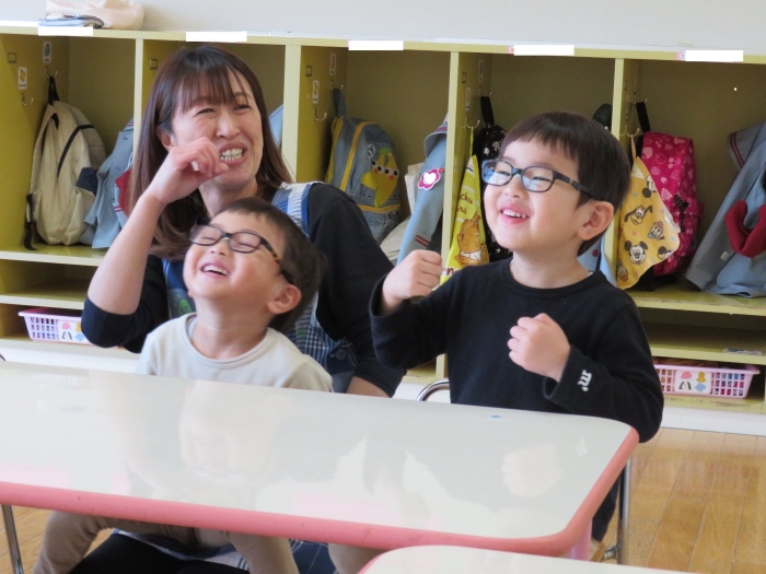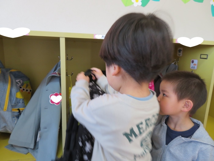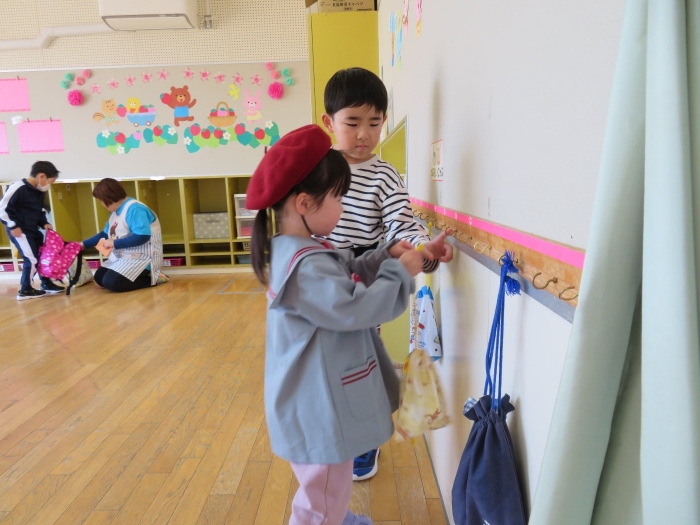 昨日入園式を終え、今日から全園児での園生活がスタートしました。8名の新入園児さん、少し緊張した様子もありましたが笑顔で登園してくれるお友達が多く、ホッとひと安心。時間が経つにつれ、先生方やたけのこさん・つくしさんと一緒に、様々な遊びを楽しむ姿が見られていました。遊んだ後は、朝の会をして、おやつも食べましたよ。