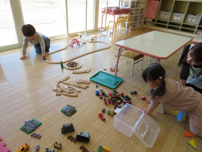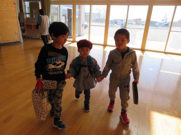 列車になって玄関まで行くよ~ 明日も元気に来てくださいね