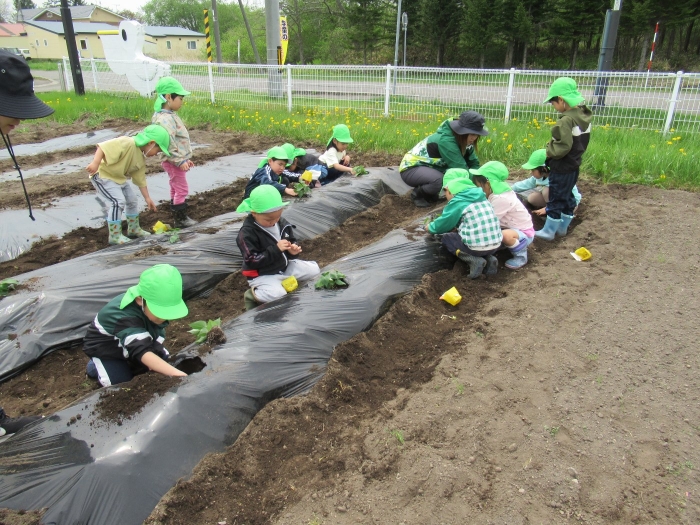 今日は、たけのこさんが、サツマイモ・かぼちゃ等の苗植えを行いました。畑やハウスの準備も整い、いよいよ作物作りが始まります。今年は、どんな作物を植えるのでしょう。水やりや雑草取り等のお世話をしっかり行い、夏や秋にはたくさん収穫できるようみんなで頑張りたいと思います。