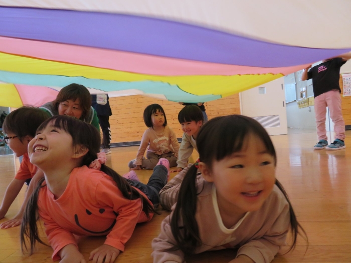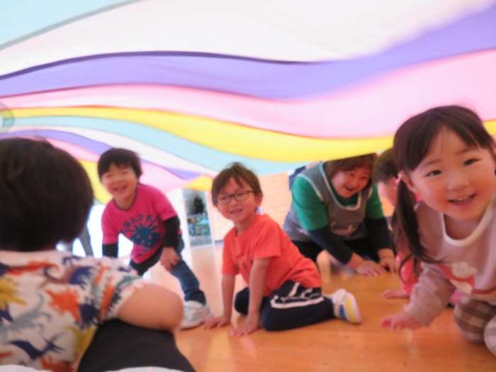 今日は、つくしさん・たけのこさんがパラバルーン練習後、いちごさんをパラバルーンの中へ入らせてくれました。パラバルーンの中に入ると、大興奮のいちごさん。来年は、一緒にパラバルーンやろうね。