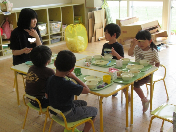 今日は、たけのこさんは上西春別保育園の年長さんとの交流で神社公園へ、つくしさんは収穫したバジルとミニトマトを使ってクッキング、いちごさんは水遊びを楽しみました。その様子は、明日のブログで…