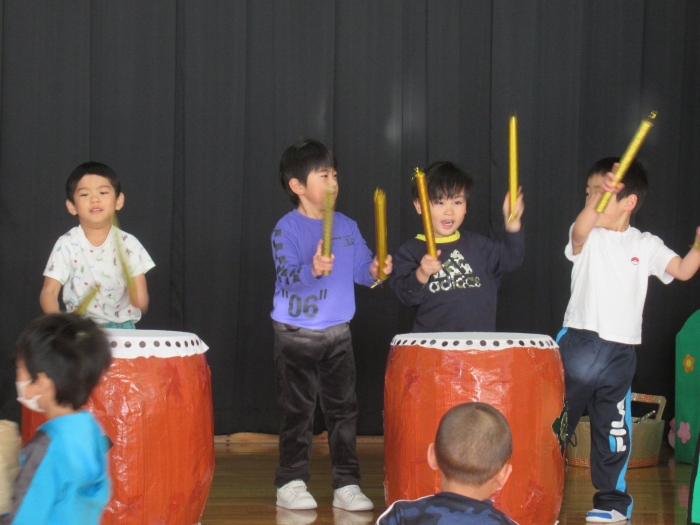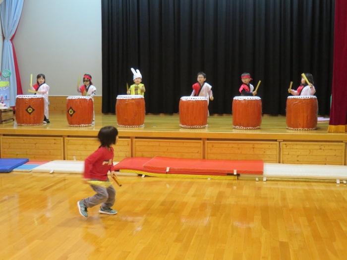 太鼓の数が足りないから、一つをみんなで