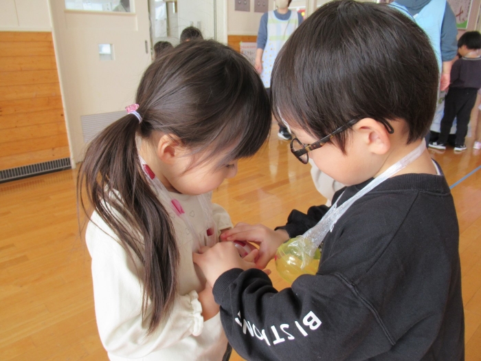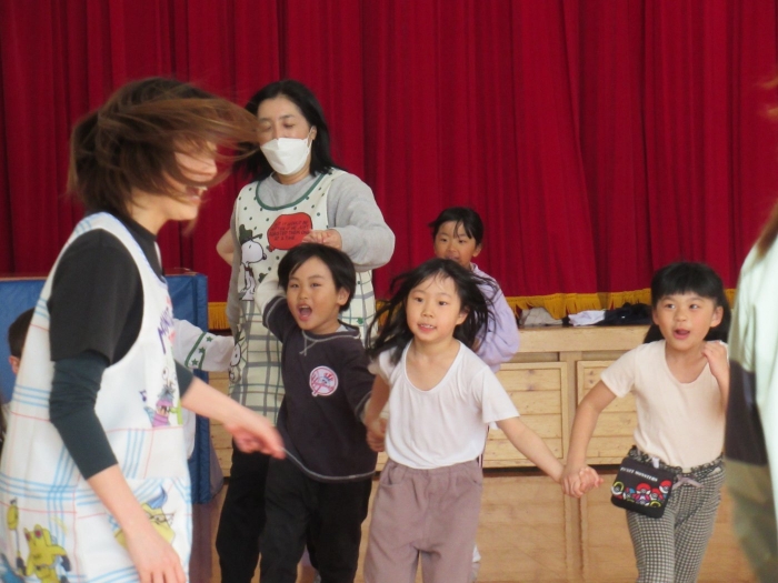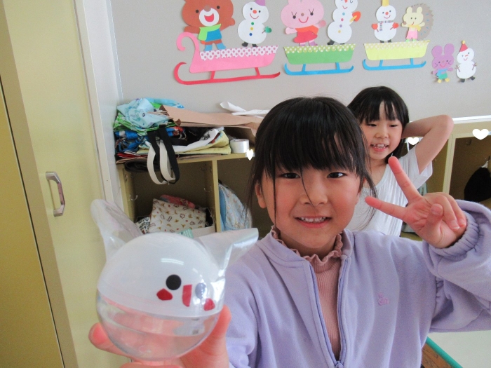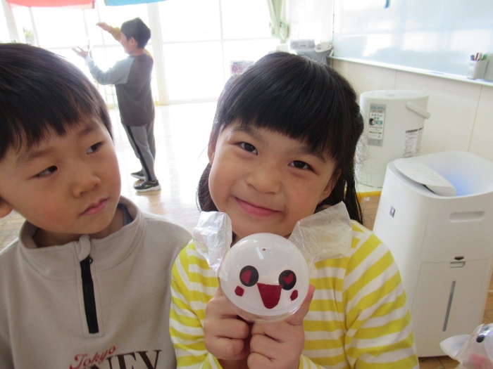今日は、全員で遊べる最後の一日でした。朝の遊びでは、ドッヂビーと手つなぎ鬼を全員で楽しみました。片付け後…たけのこさんからのサプライズが!大好きないちごさん・つくしさんへ、ありがとうの気持ちを込めて最後にプレゼントがありました。最後の最後まで、嬉しいことを考えてくれるたけのこさんでした。