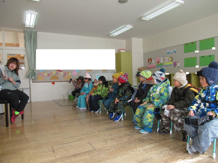 つくしさん、たけのこさんに手作りそりを見てもらいました