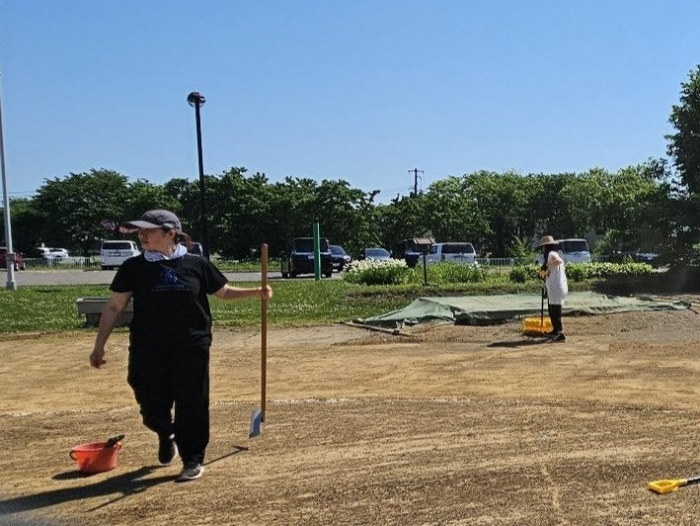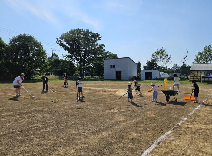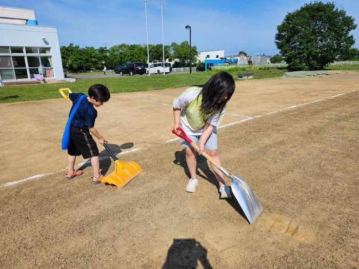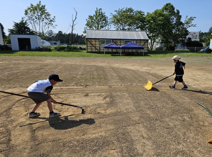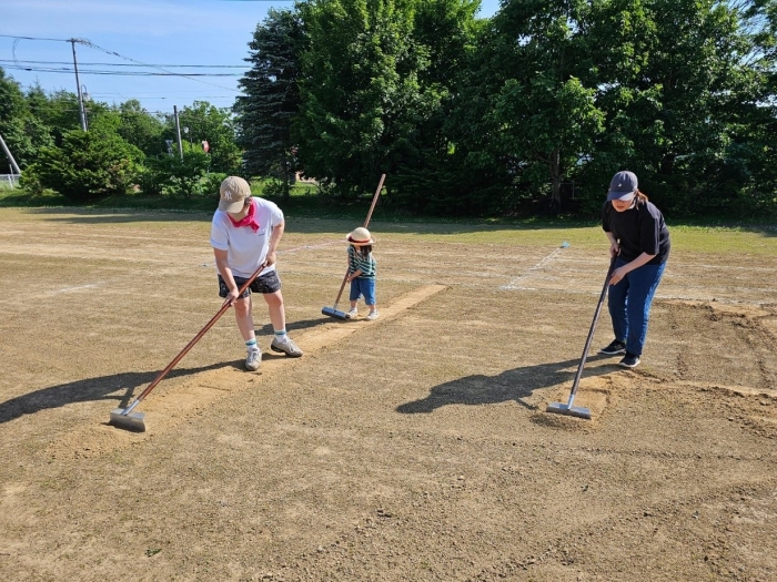 今日も暑い一日でしたね~。そんな中、引き続きグラウンドの雑草駆除へのご協力をしてくださった保護者の皆様ありがとうございました。お母様方と一緒に園児や小学生のお兄ちゃん・お姉ちゃんまで参加してくれ、とても助かりました☆彡  見違えるように綺麗になっていき、走りやすいグラウンドで伸び伸び運動会ができそうです。あと、もう一息! よろしくお願いします。
