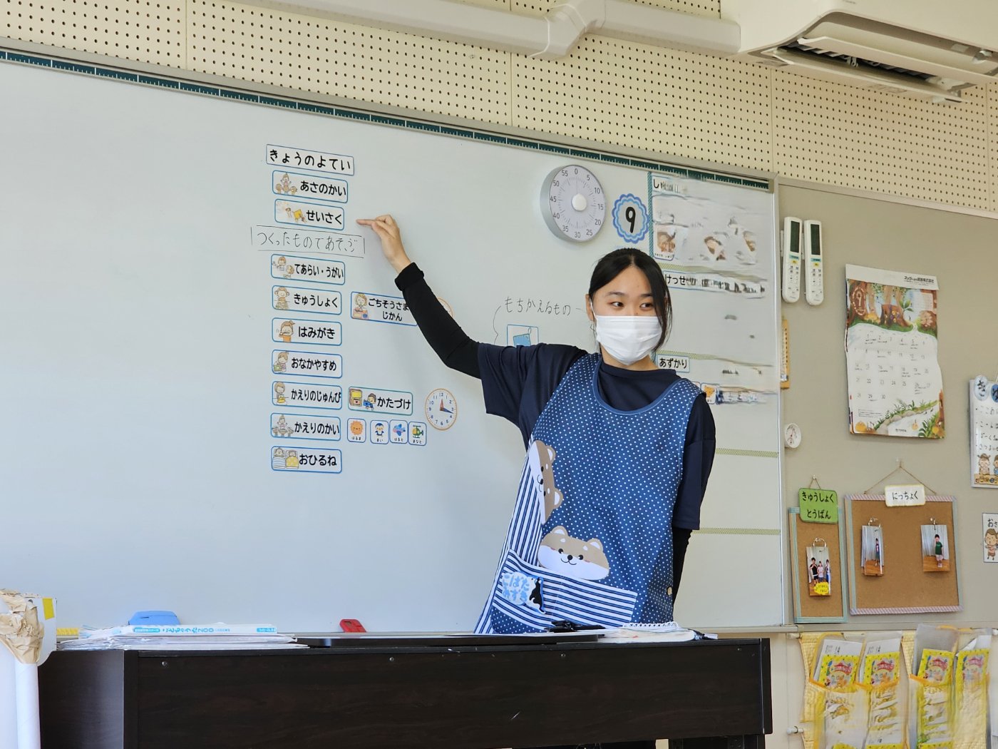 M先生はかなり緊張していたそうですが、これまでの部分実習での経験を生かしながら、緊張を感じさせない落ち着いた声のトーンや柔らかな物腰で、子ども達の心を引き付けていました。来週月曜日が教育実習の最終日となりますが、子ども達とたくさん関わって、充実感いっぱいで最後の一日を終えてもらえればと思います。