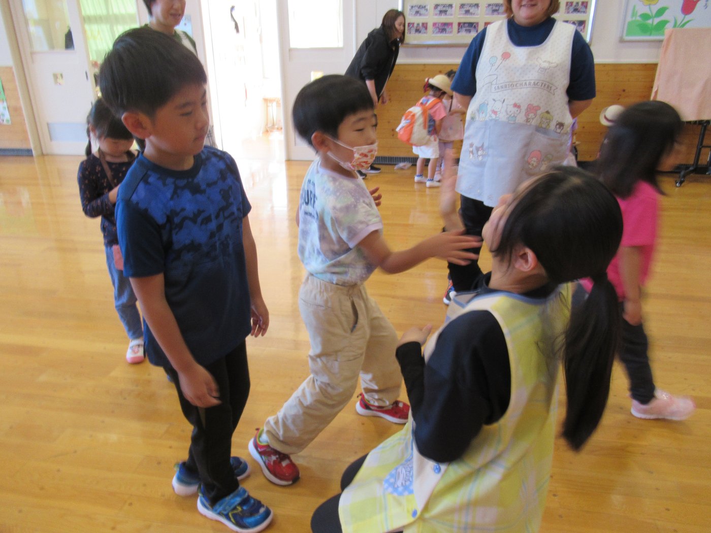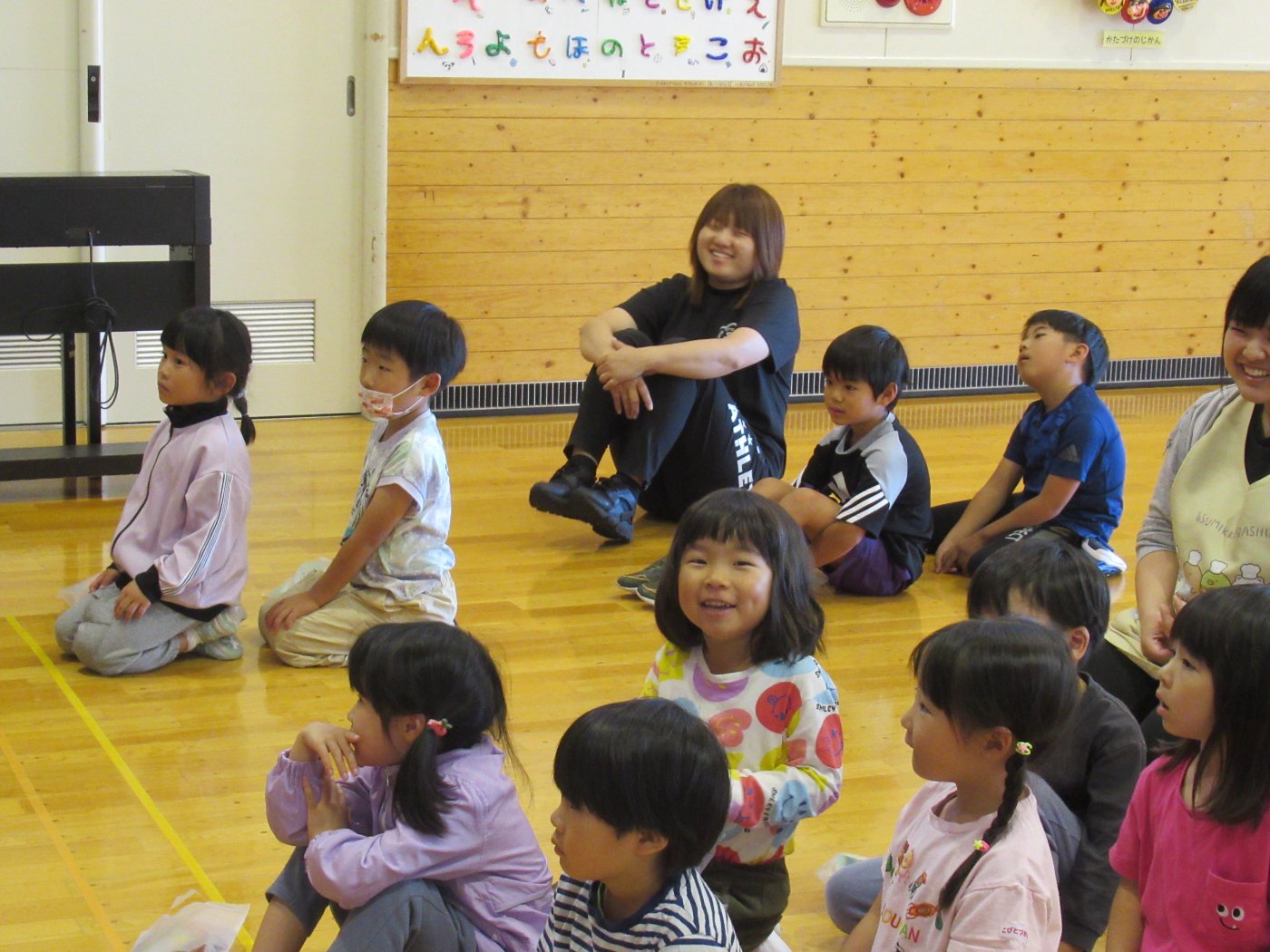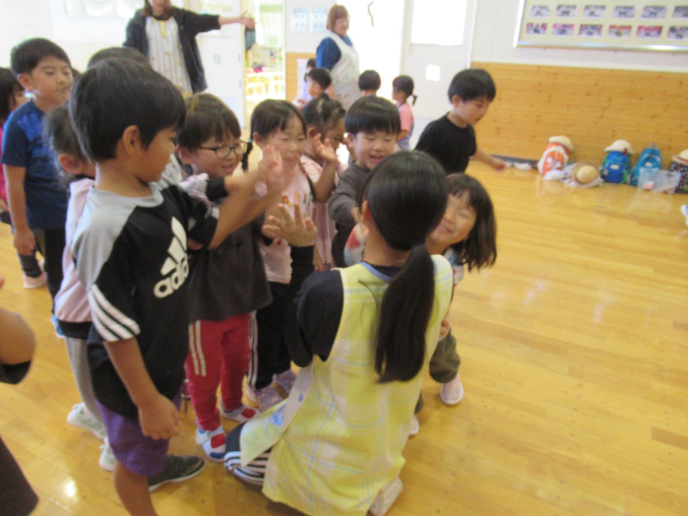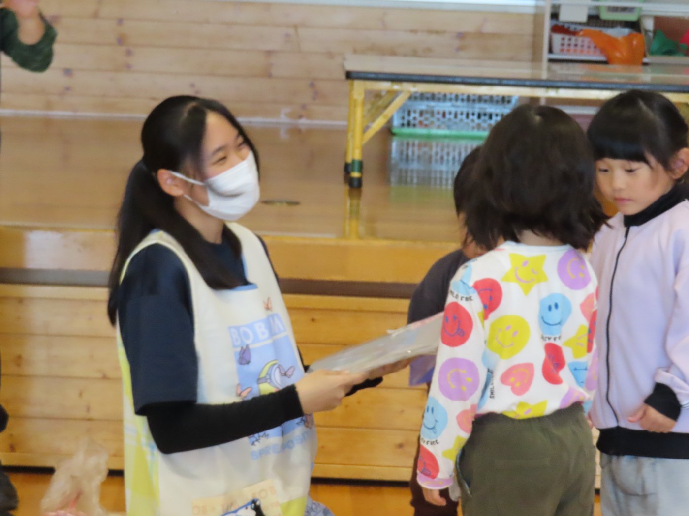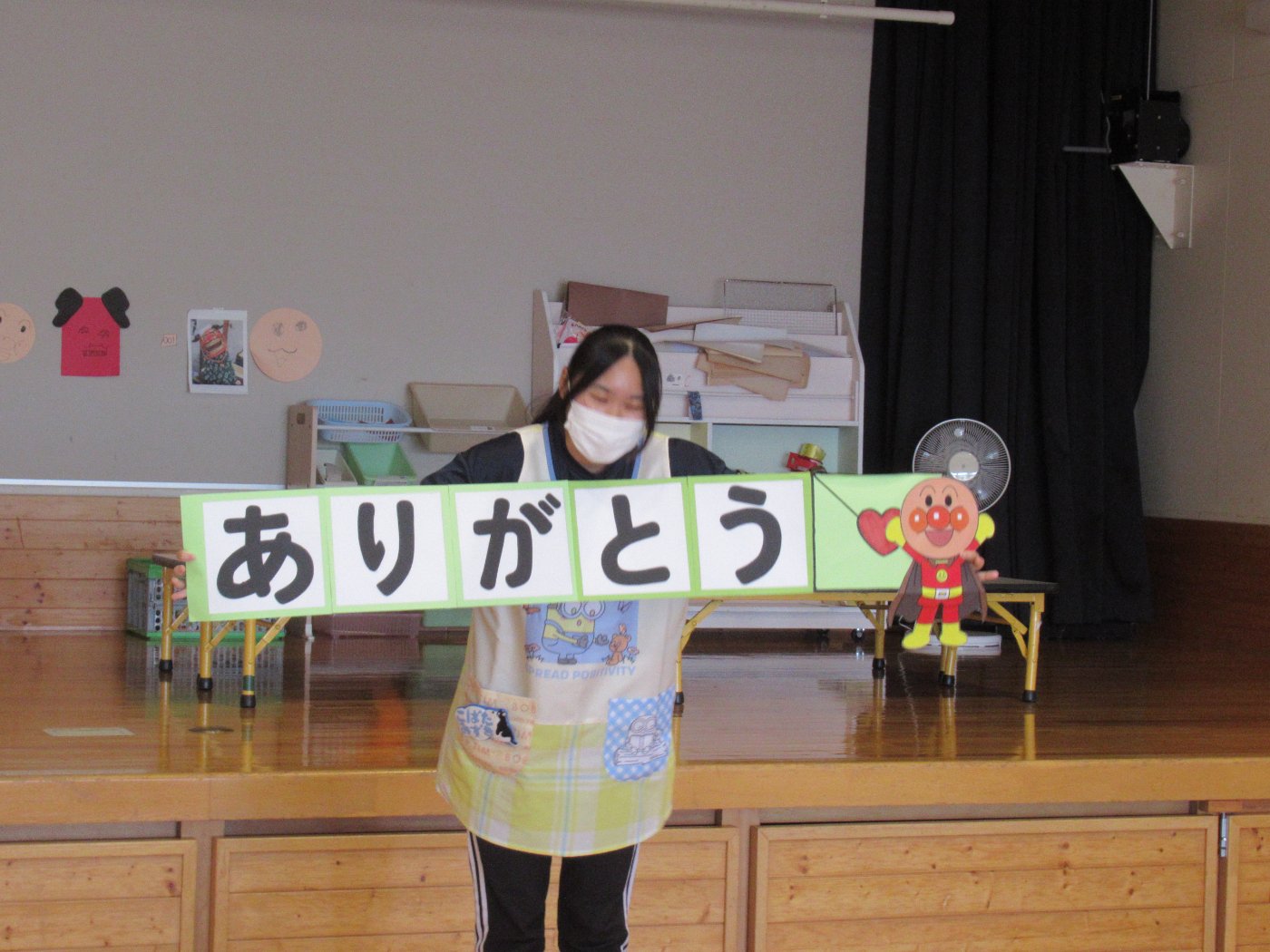 今日は、M先生の教育実習最終日でした。実習期間の4週間、一緒に遊んだり給食を食べたり、バス遠足や神社祭典などの行事も共にし、M先生とたくさん触れ合って楽しい思い出ができました。