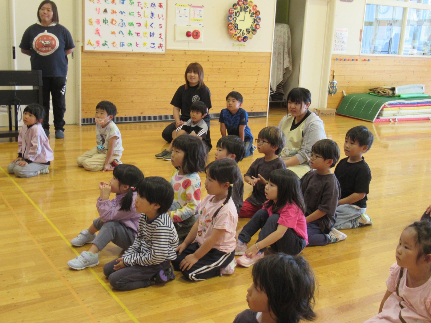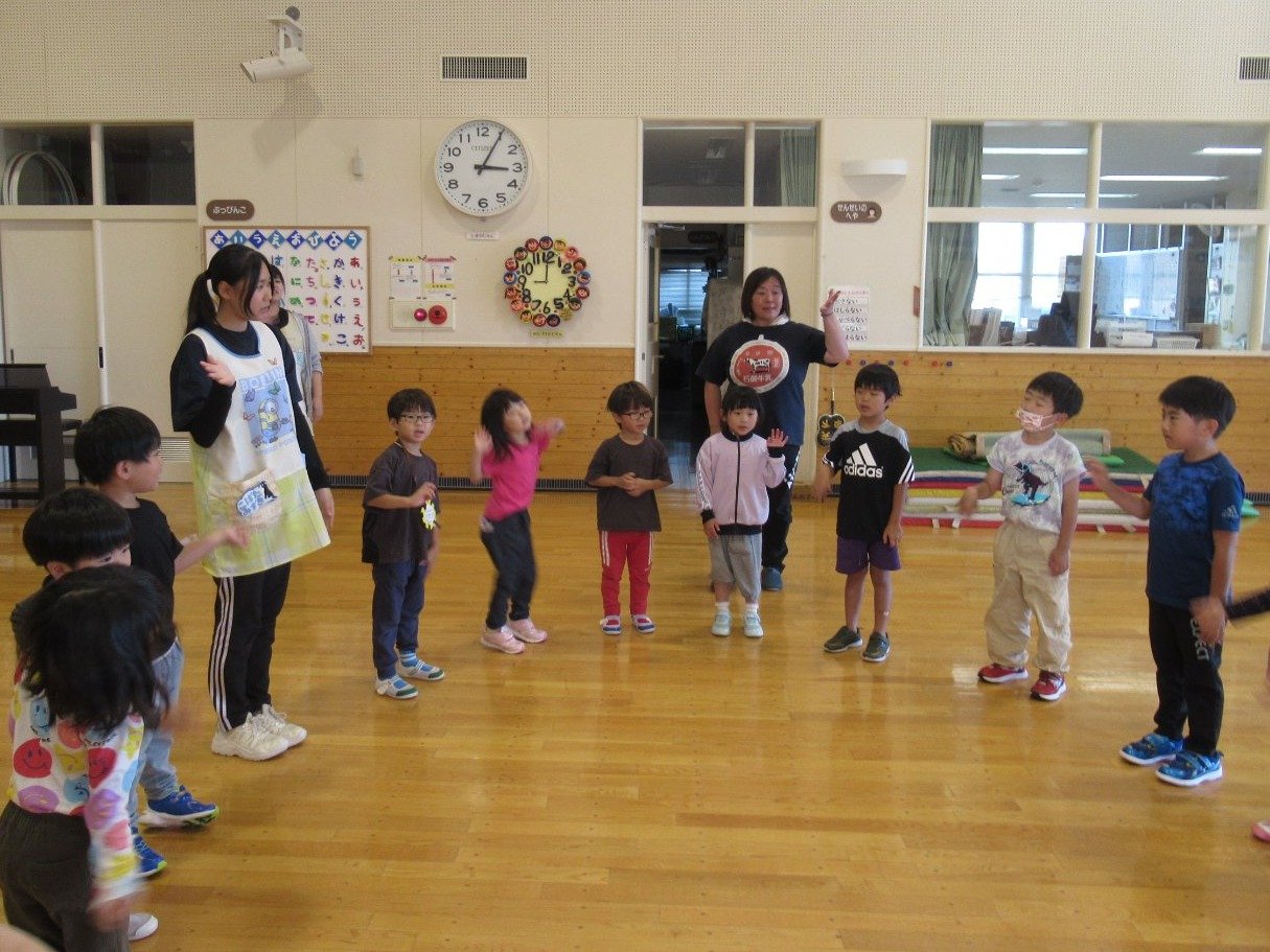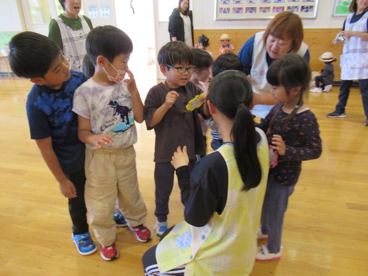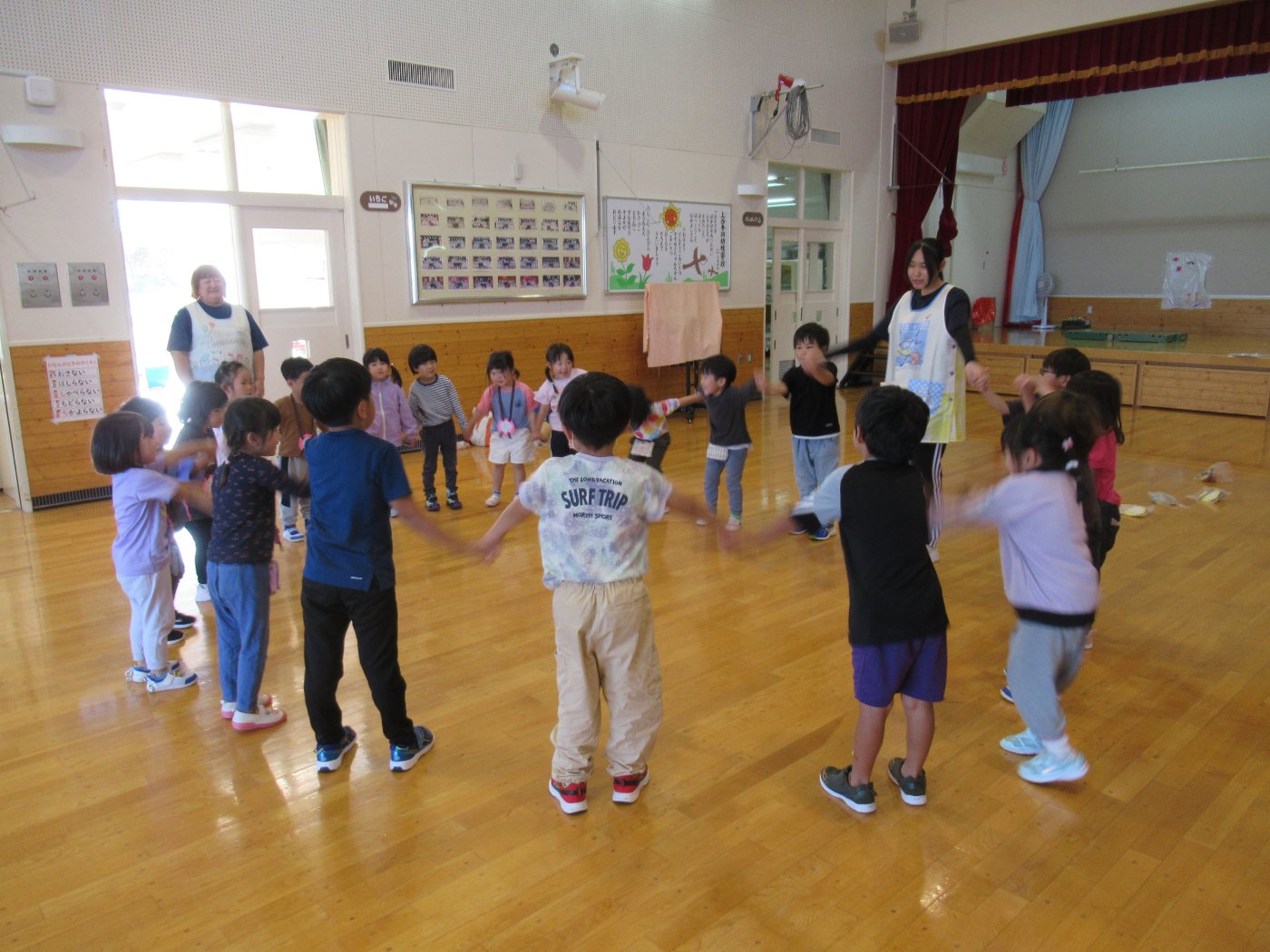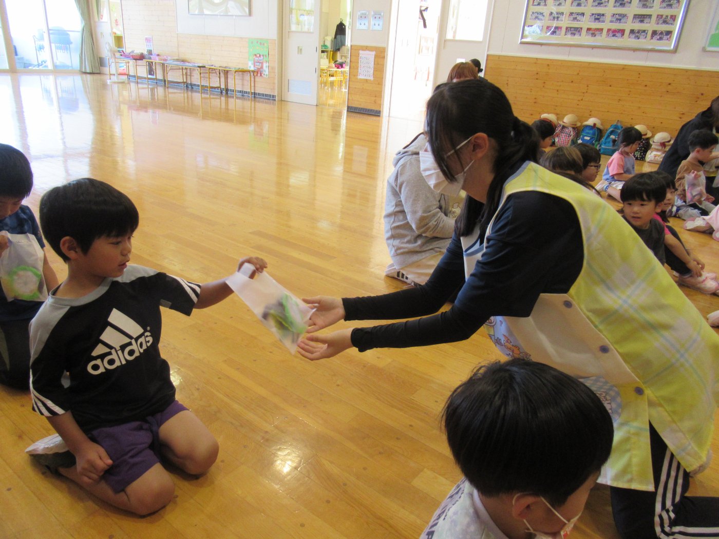 今日は、M先生の教育実習最終日でした。実習期間の4週間、一緒に遊んだり給食を食べたり、バス遠足や神社祭典などの行事も共にし、M先生とたくさん触れ合って楽しい思い出ができました。