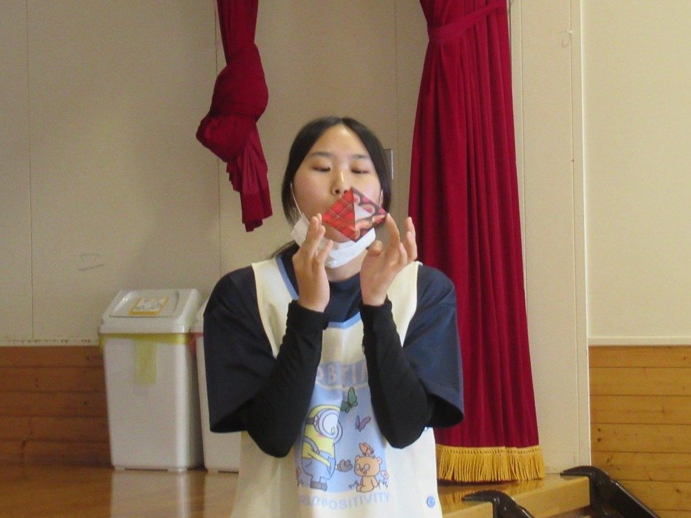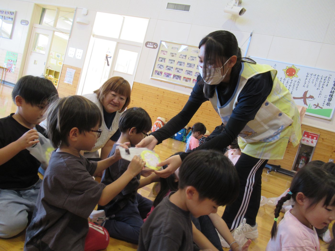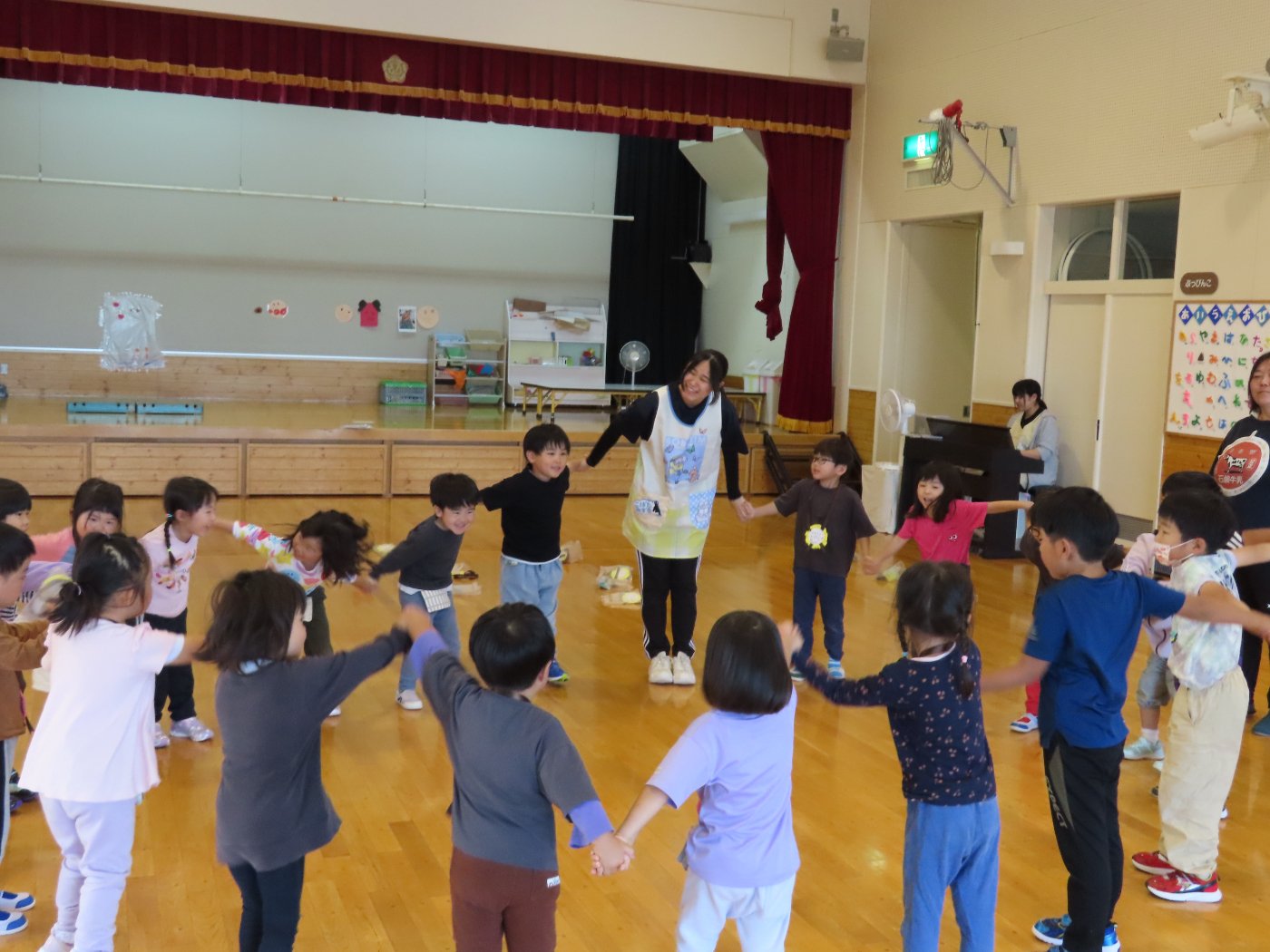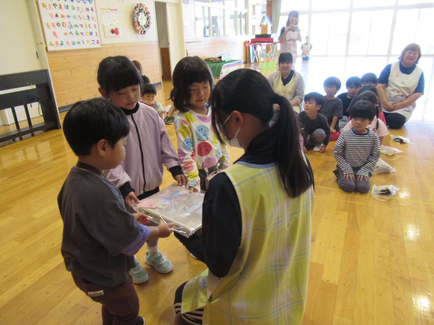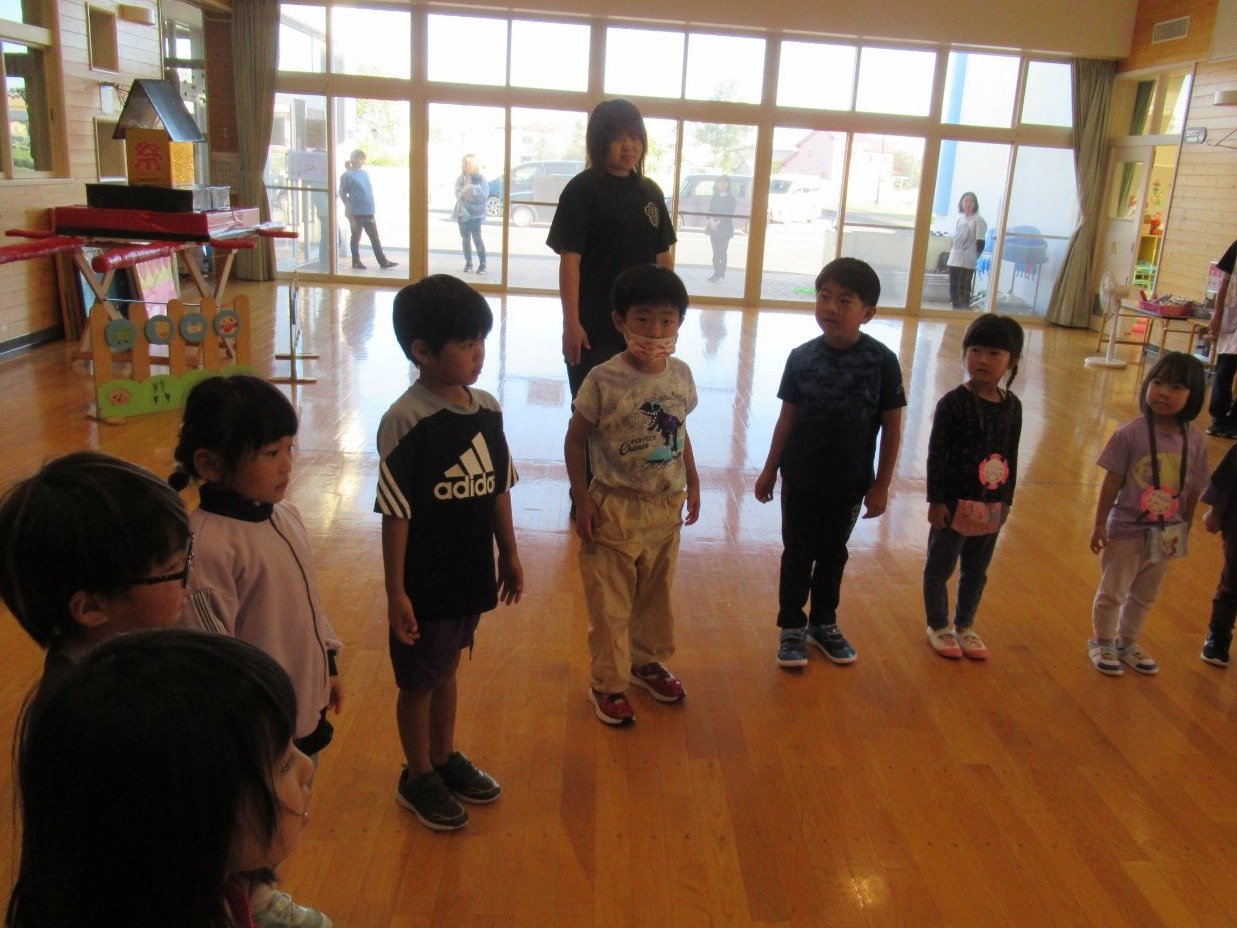 今日は、M先生の教育実習最終日でした。実習期間の4週間、一緒に遊んだり給食を食べたり、バス遠足や神社祭典などの行事も共にし、M先生とたくさん触れ合って楽しい思い出ができました。