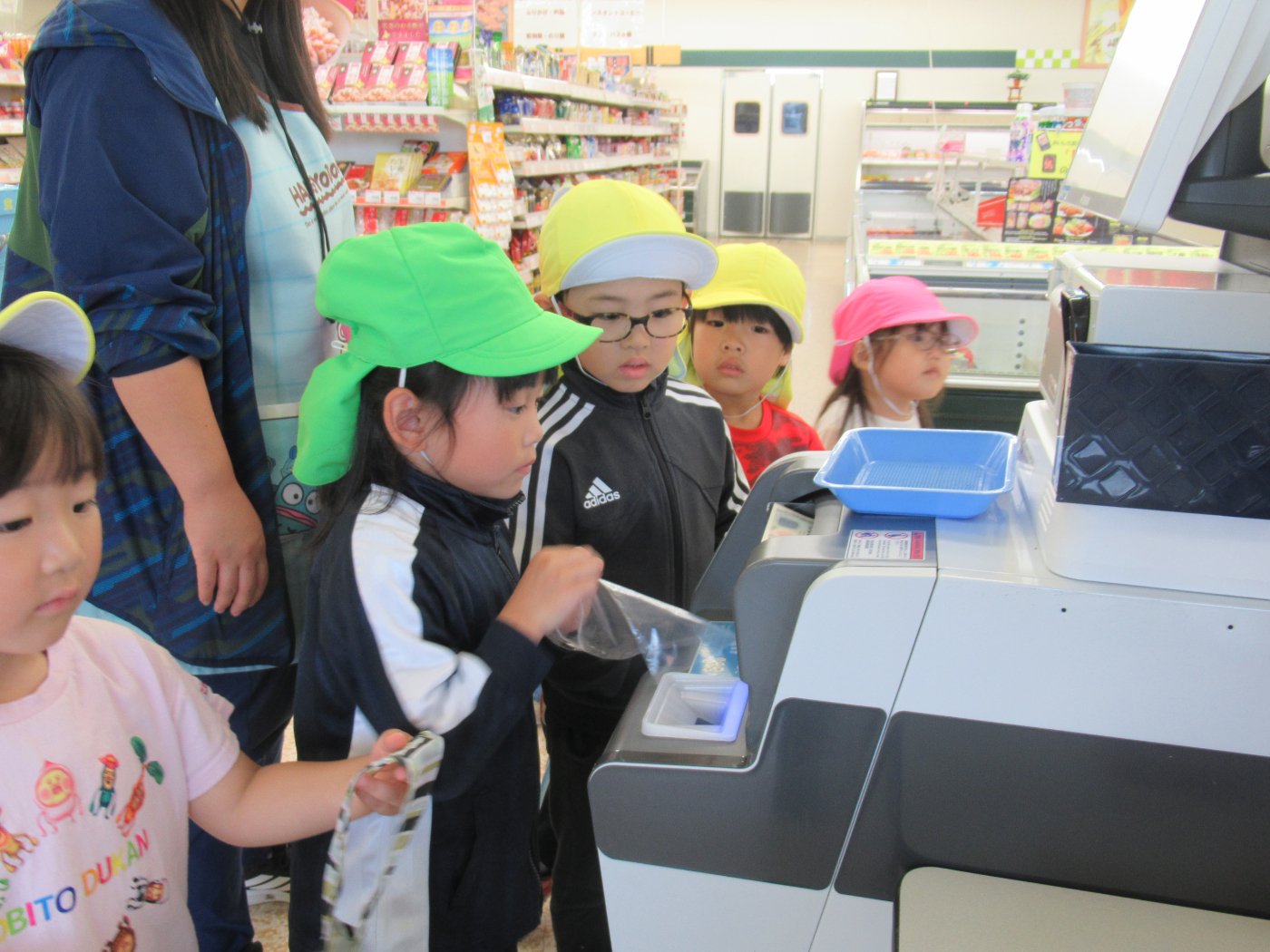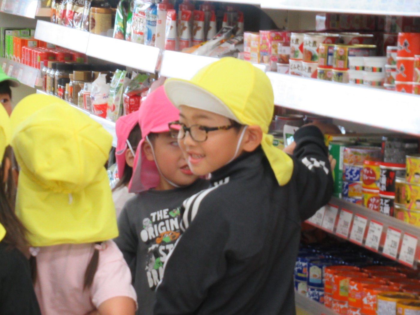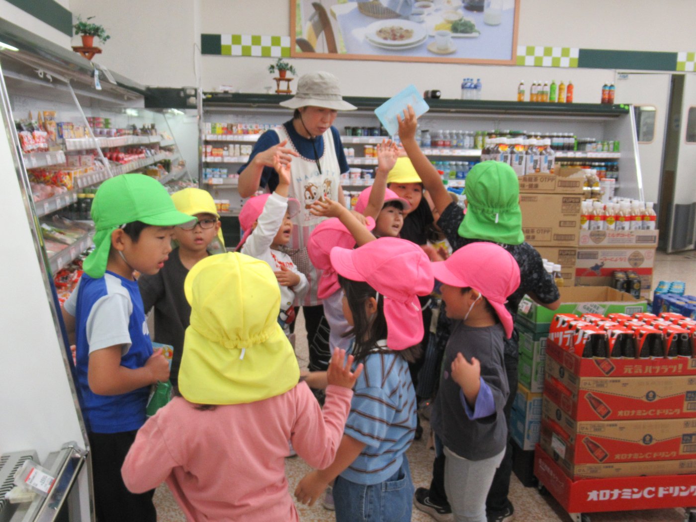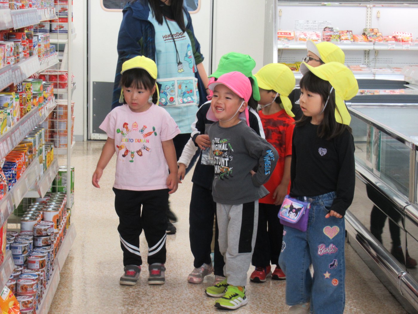 山ブドウ狩りの帰りには、ピザ作りに必要な材料(チーズ、コーン、ウィンナー)を買いにAコープに行ってきました。買物といえば、経験者たけのこ組の出番です! 買い出しする3種類の食材チームに分かれ、たけのこ組がいちご組・つくし組をリードしながら買物をしました。