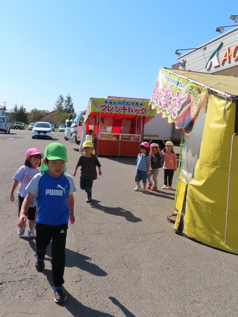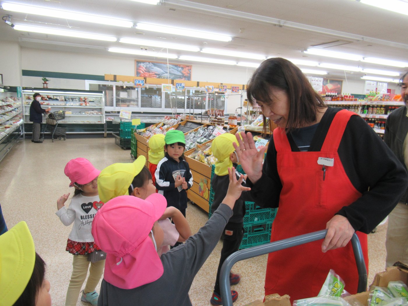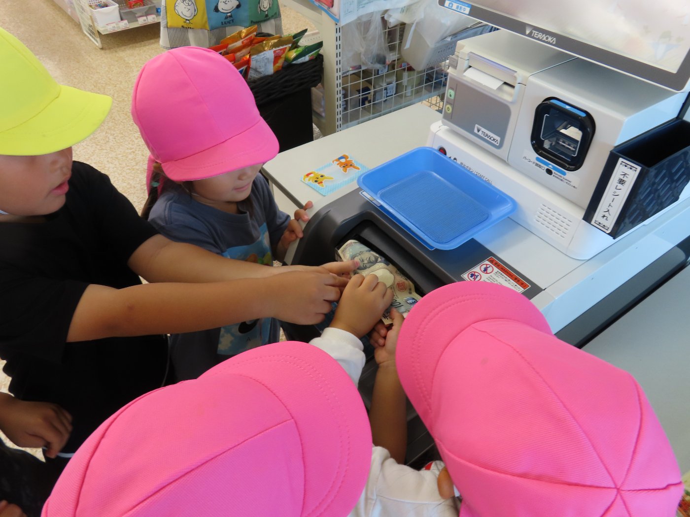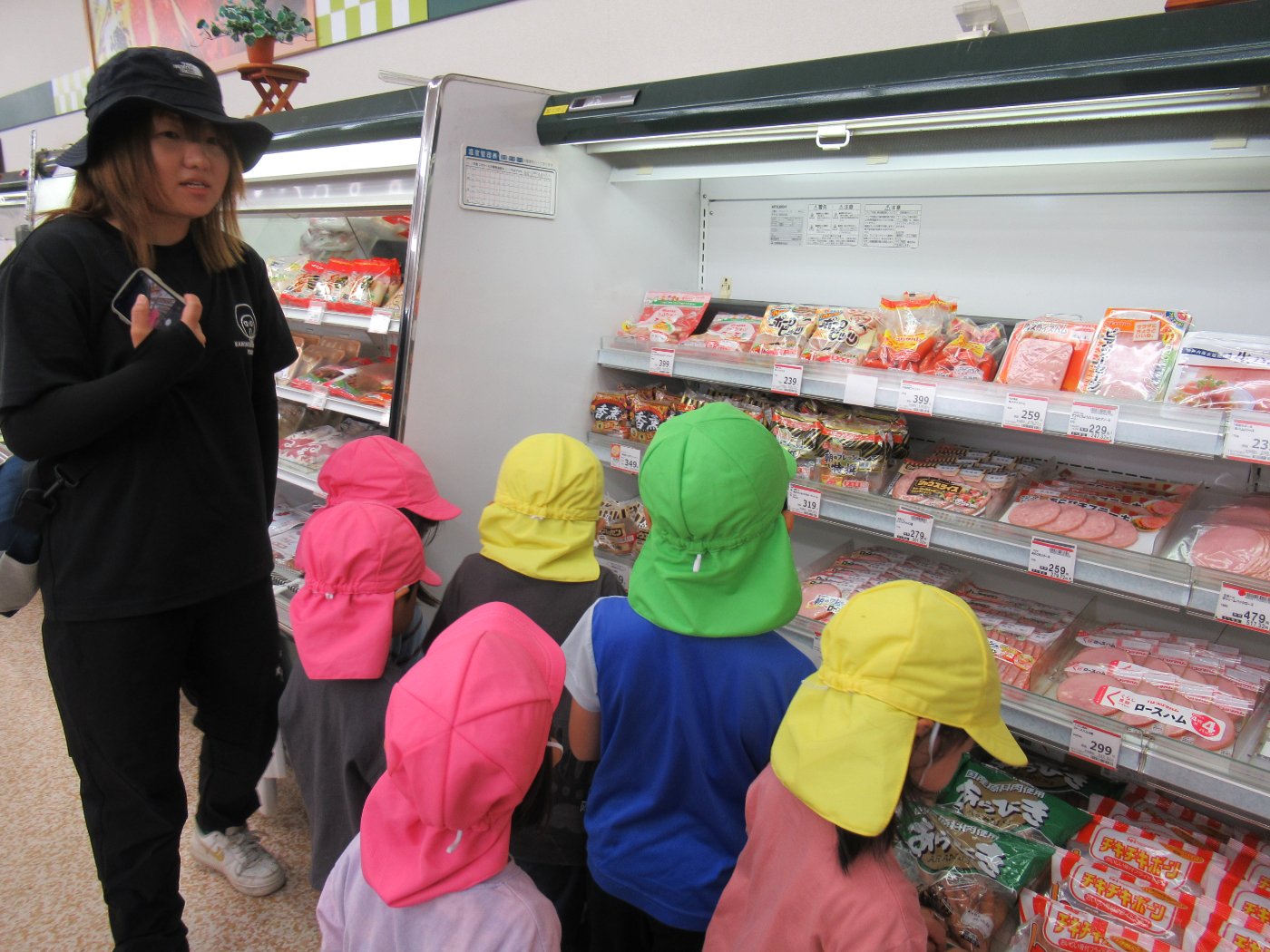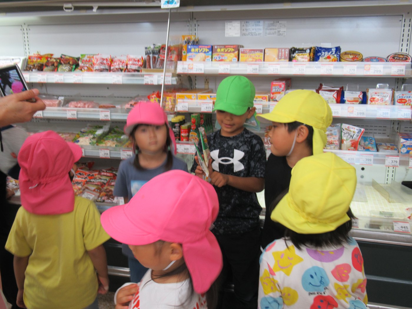 山ブドウ狩りの帰りには、ピザ作りに必要な材料(チーズ、コーン、ウィンナー)を買いにAコープに行ってきました。買物といえば、経験者たけのこ組の出番です! 買い出しする3種類の食材チームに分かれ、たけのこ組がいちご組・つくし組をリードしながら買物をしました。