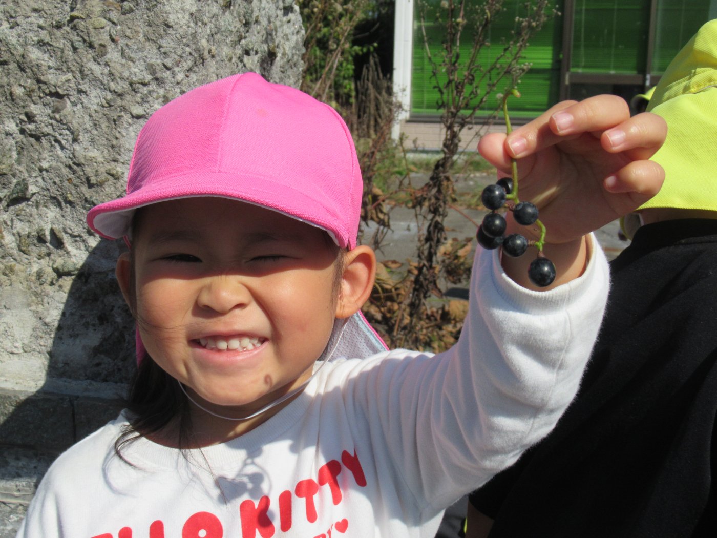 以前から話をし、楽しみにしていた今日の予定は…『山ブドウ狩り』&『収穫野菜でのピザ作り』☆彡 先月、神社公園までの道のりで発見した山ブドウをもう一回採りに行こう! 収穫したズッキーニ&ミニトマト&ピーマン&バジルでピザを作ろう!と、大張り切りで出掛けました。残念ながら山ブドウの方は残りわずかとなっていましたが、蔓を掻き分け数少ない実を採ってきました。収穫した山ブドウは、何かに変身します。