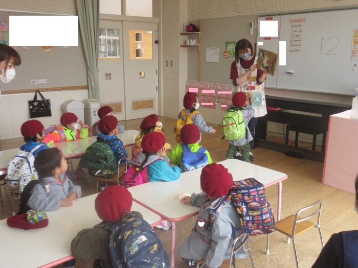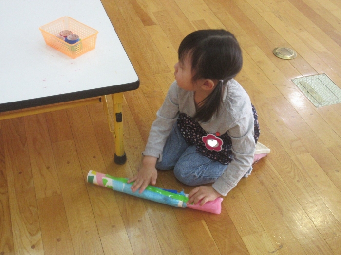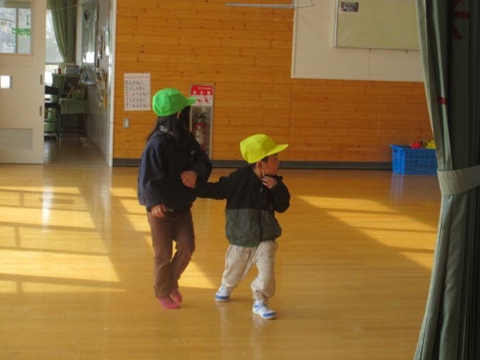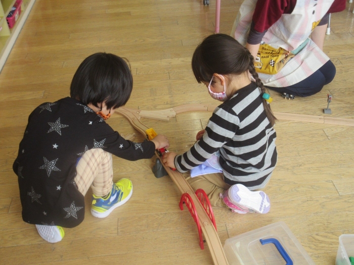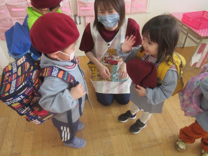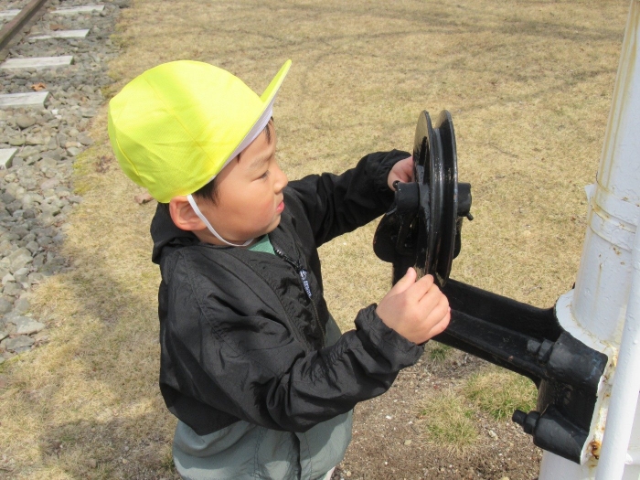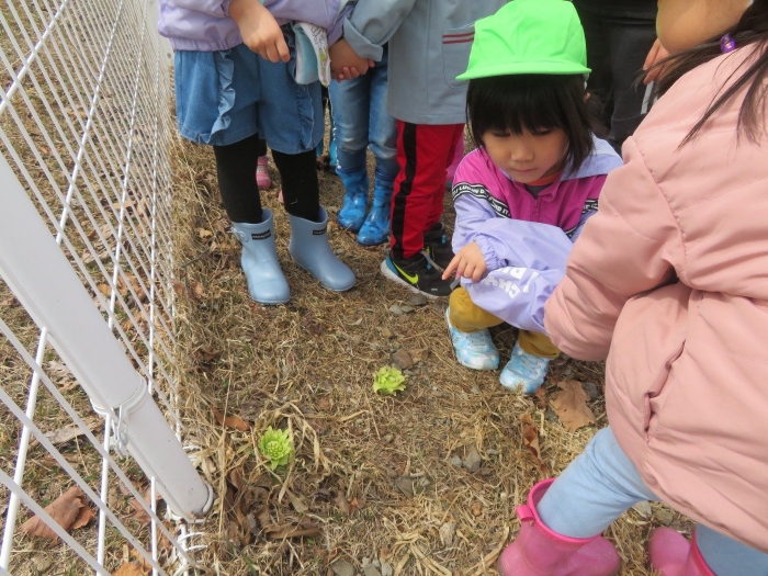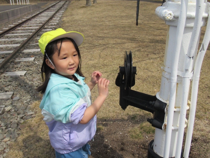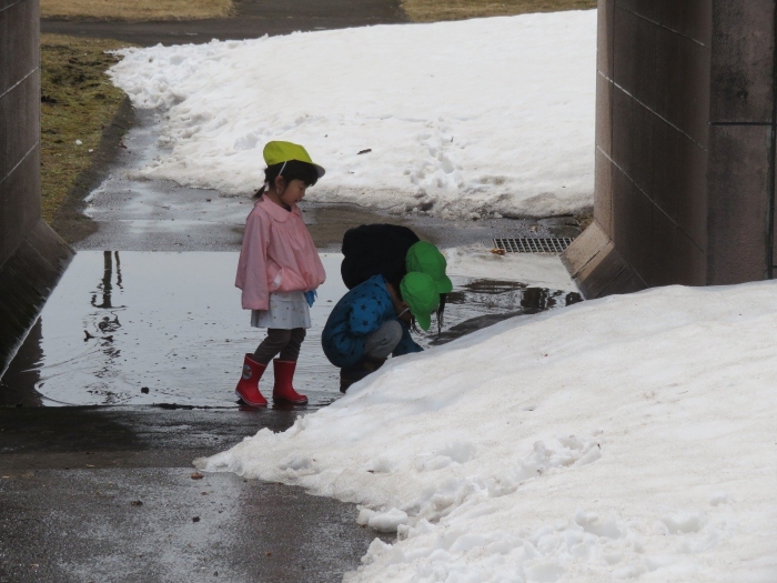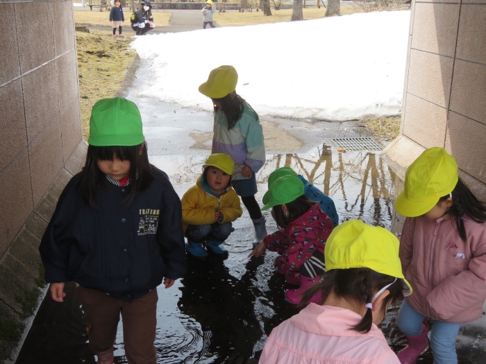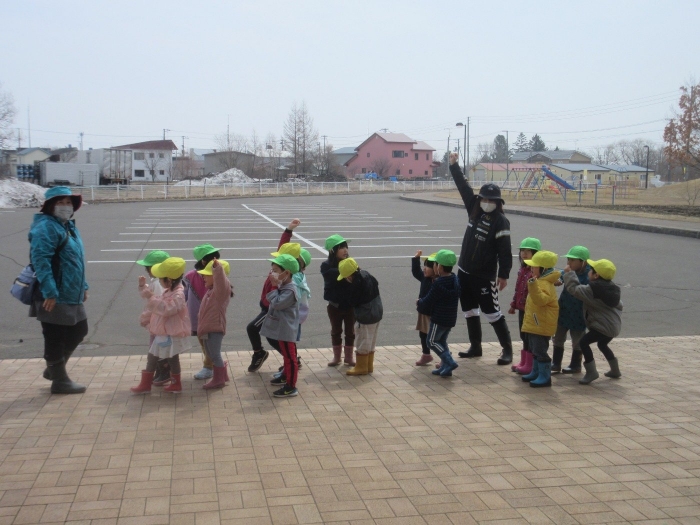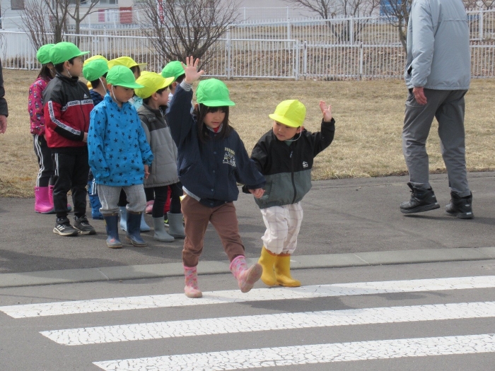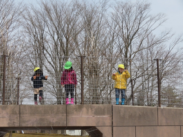 朝の会後、つくし組、たけのこ組は、鉄道公園までお散歩に行きました。進級して初めてのお散歩、たけのこさんは、自分達が道路側を歩いたり、道路を歩くときはふざけないように声をかけたりする様子が見られ、お兄さんお姉さんとして頑張ってくれていたようです。つくしさんは、たけのこさんのいうことをちゃんと聞いて行動してくれていたようですよ。