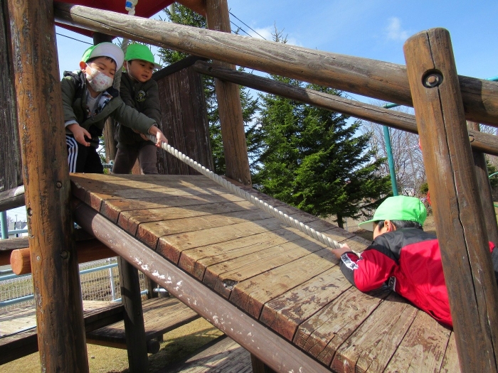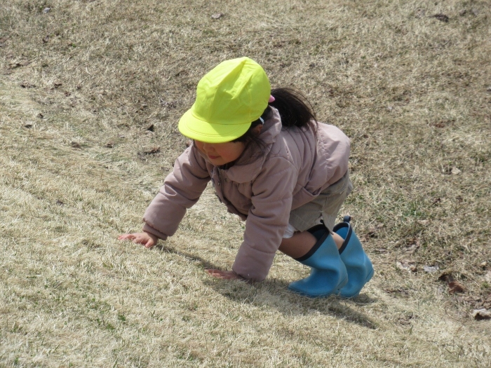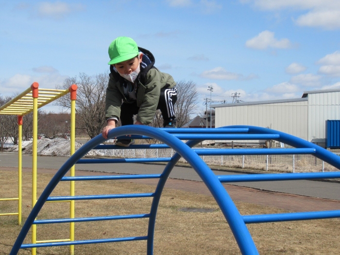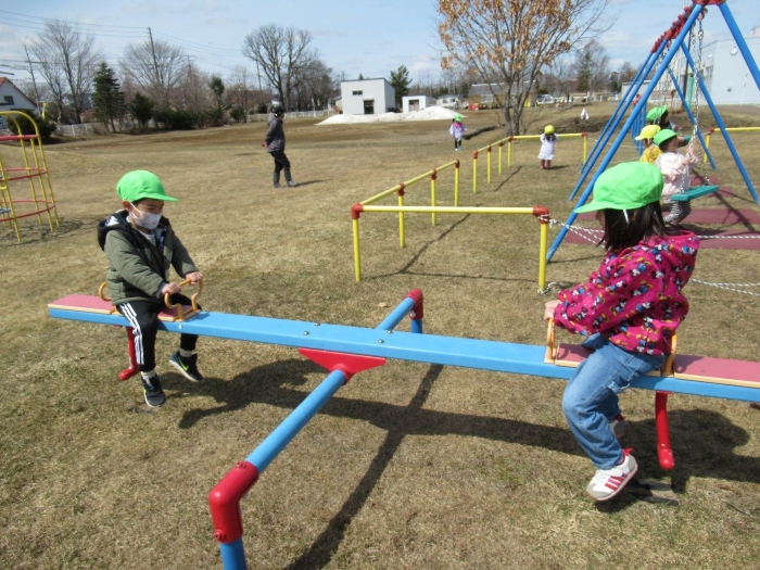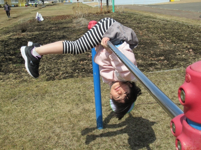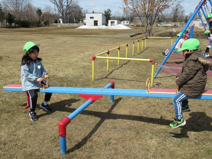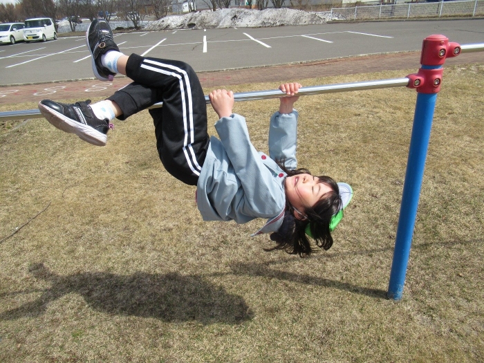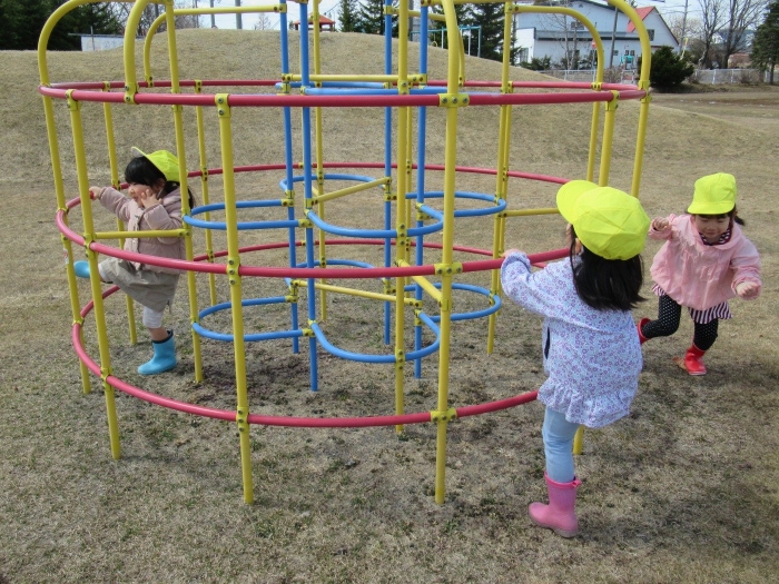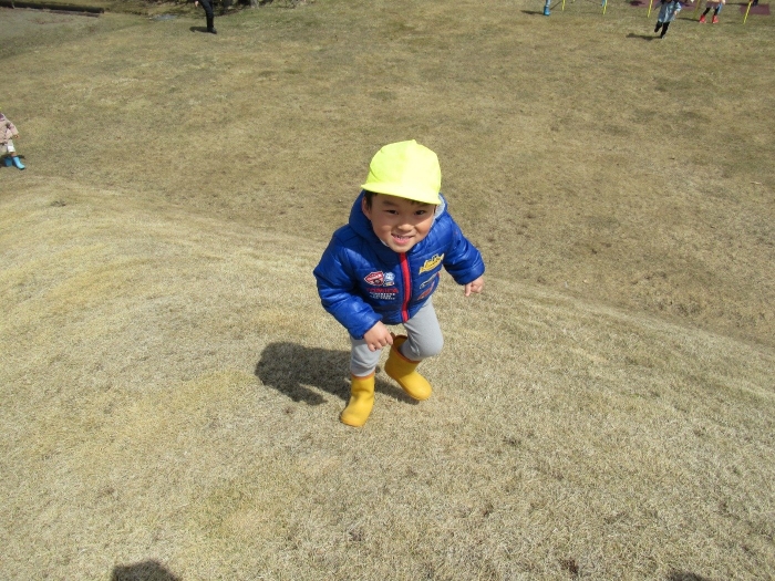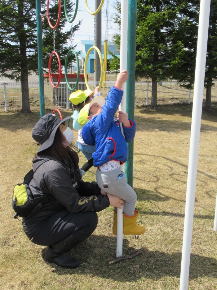今日は、気温が高く温かい一日でしたね。つくしさんとたけのこさんは、戸外遊びを楽しみました。久しぶりに体を思いっきり動かして固定遊具に挑戦したり砂場で遊んだりと開放感いっぱいで楽しみ、笑顔がたくさん見られていました。