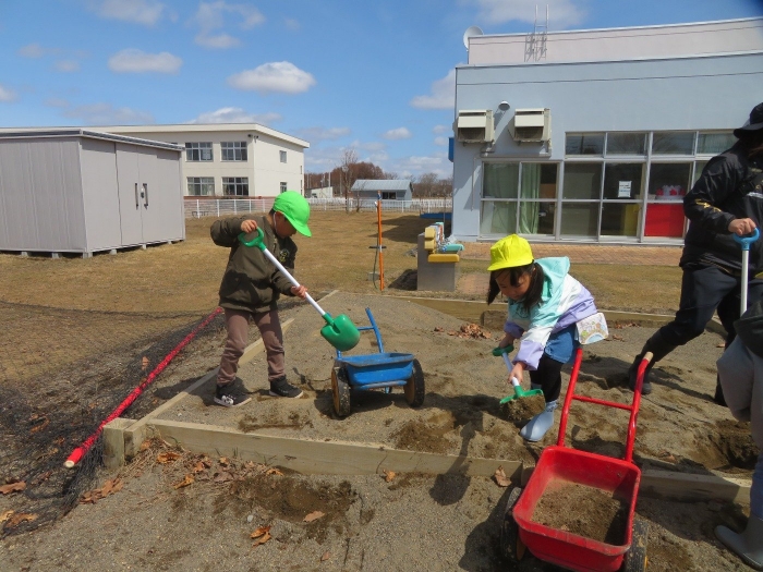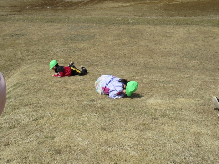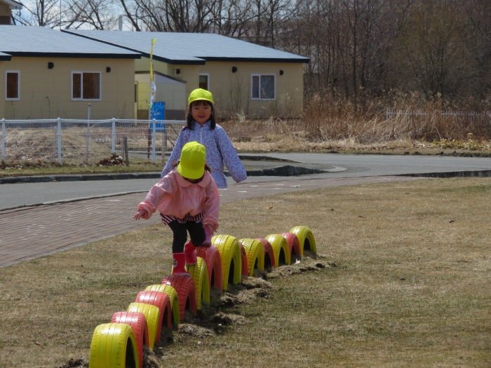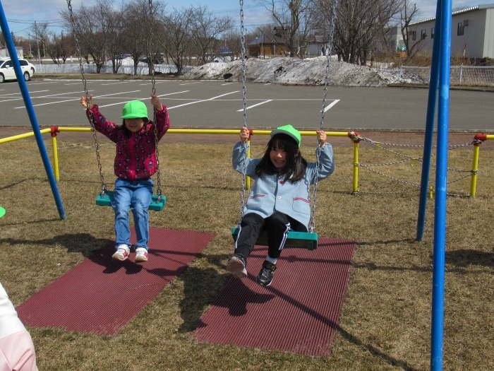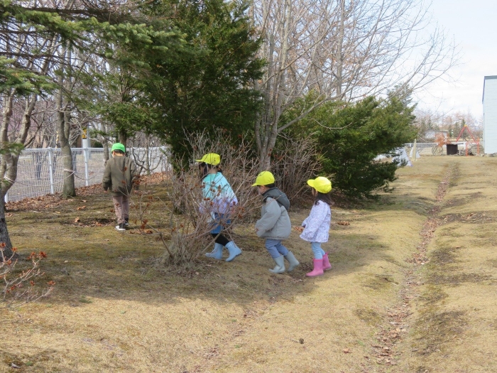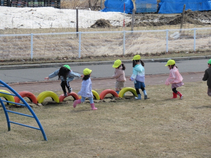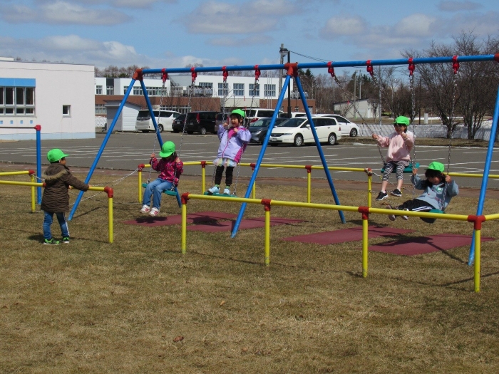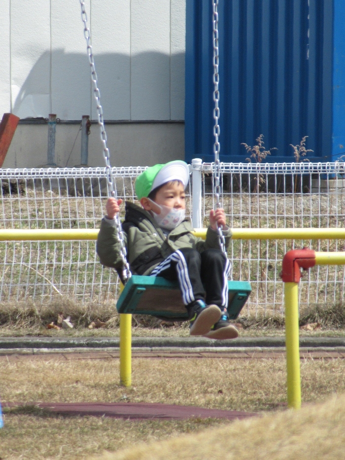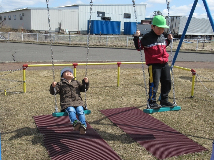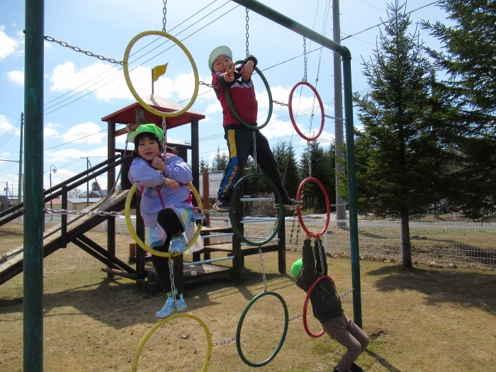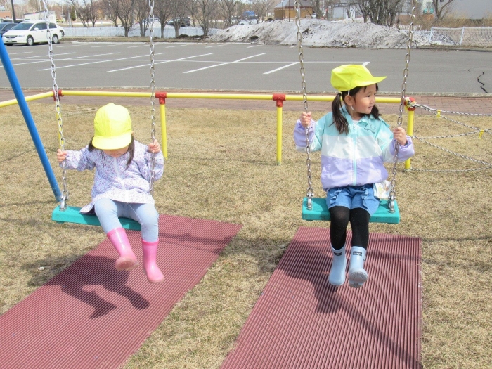 今日は、気温が高く温かい一日でしたね。つくしさんとたけのこさんは、戸外遊びを楽しみました。久しぶりに体を思いっきり動かして固定遊具に挑戦したり砂場で遊んだりと開放感いっぱいで楽しみ、笑顔がたくさん見られていました。