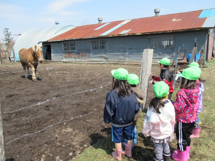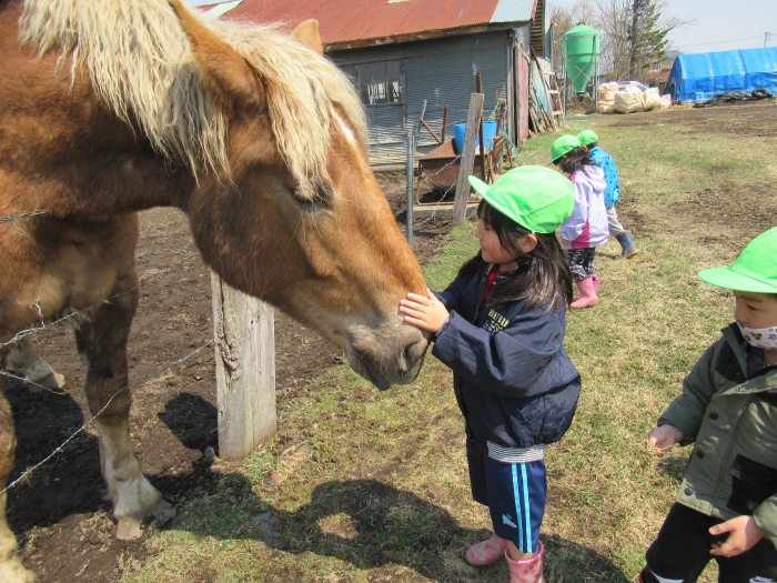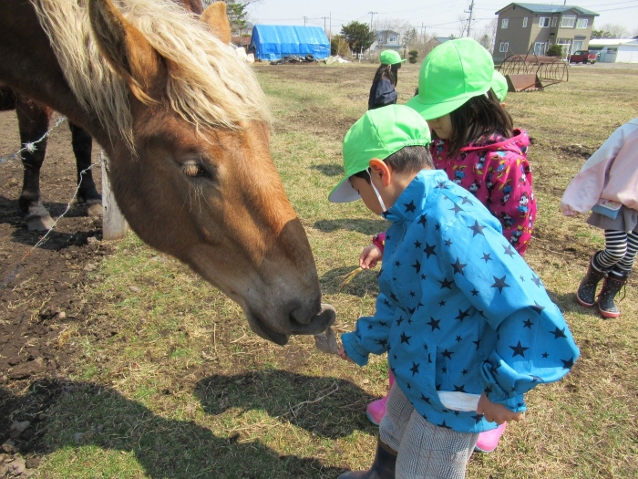 たけのこさんは、久しぶりに馬に会いに行ってきました。子供達が近くまで行くと、馬も近くまで来てくれました。昨年から通い続けていたので、覚えてくれていたのかもしれませんね。馬にそーっと優しく触れることに、慣れてきたようですよ。
