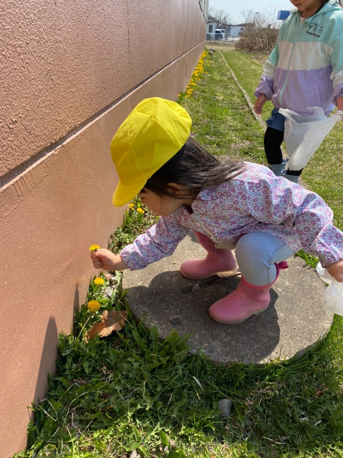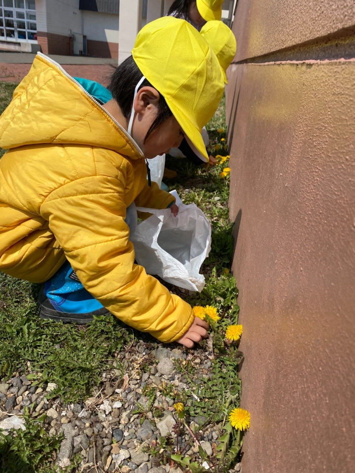 つくしさんは、小学校までお散歩へ。昨日、小学校にタンポポがたくさん咲いていることに気付き、行ってみよう!ということになったようです。小学校の先生に「タンポポをとってもいいですか?」と聞いてOKをいただきお邪魔してきました。採ってきたタンポポは天ぷらに。美味しくいただきました。