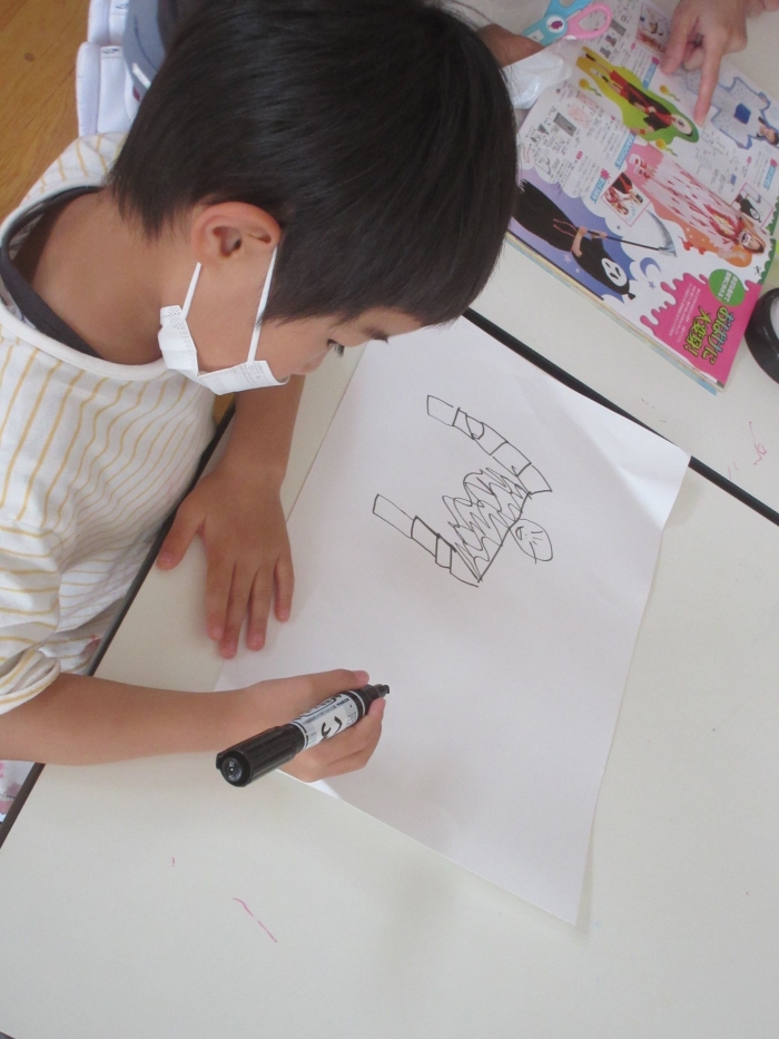 紙にオバケの絵を描いたり