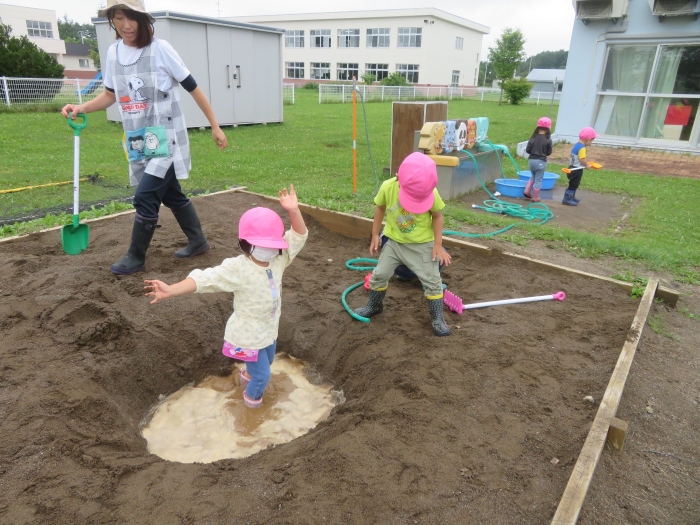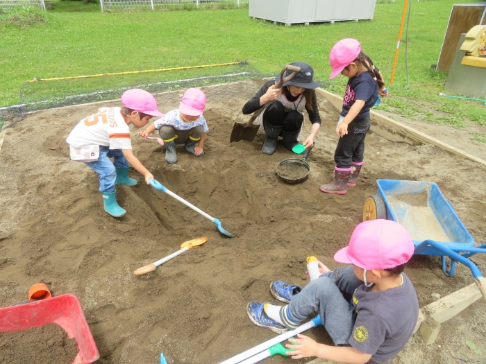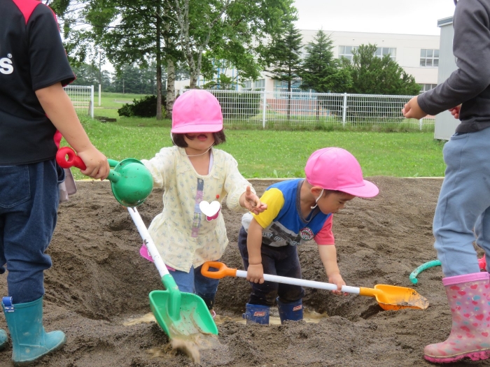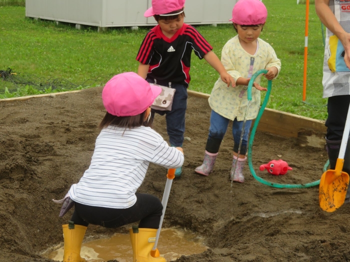 砂場では大きな穴を作成中