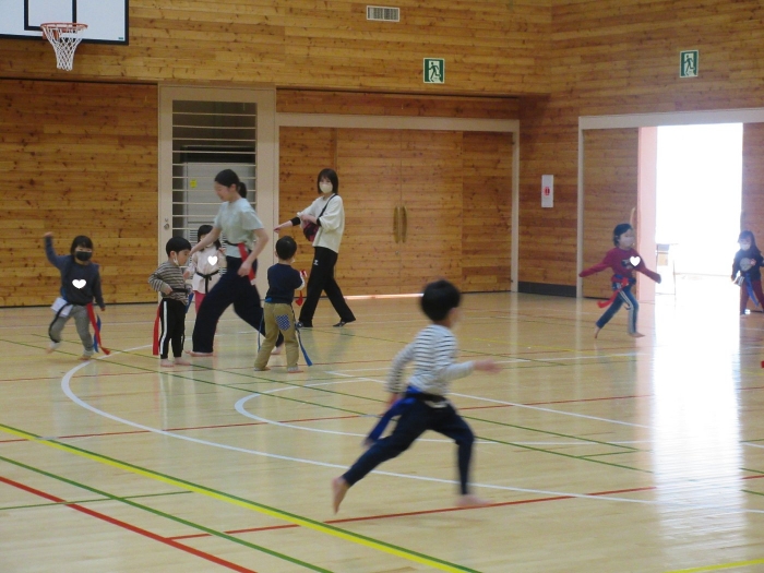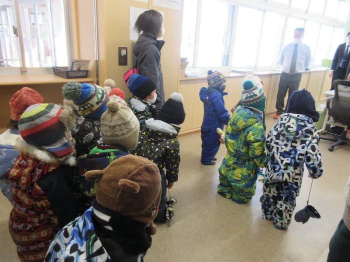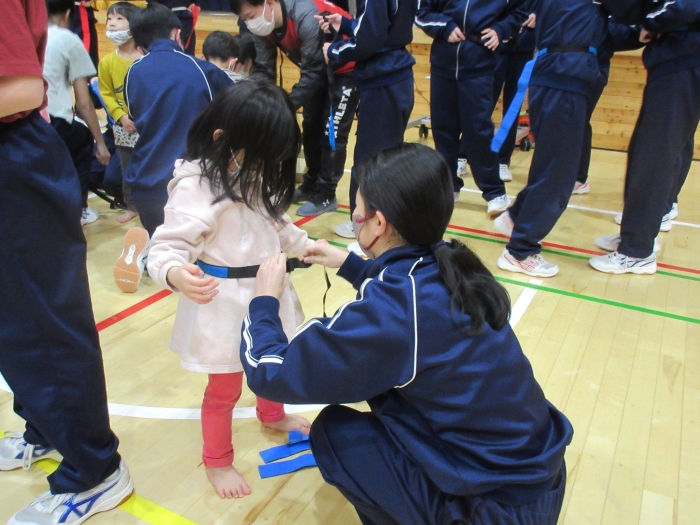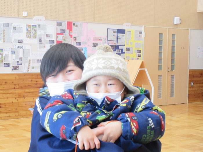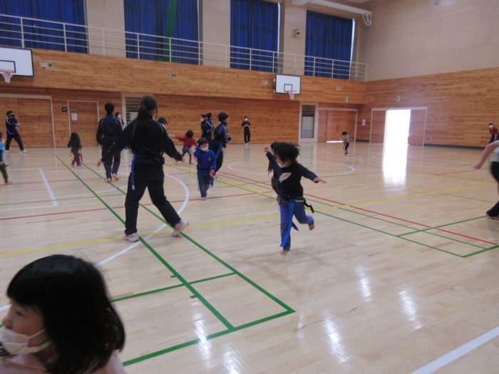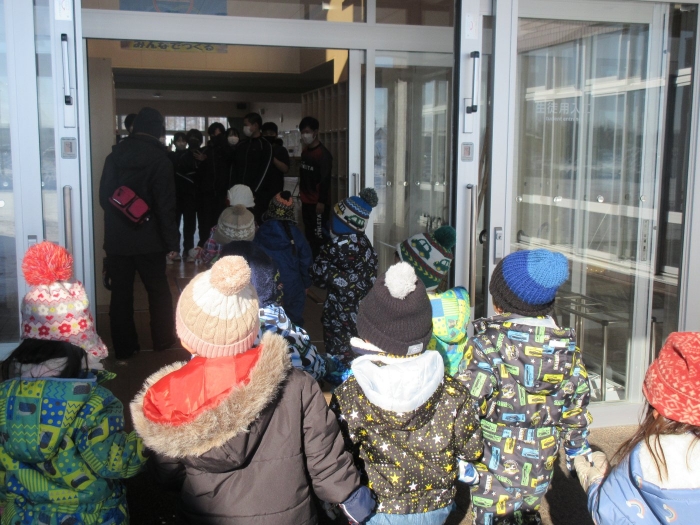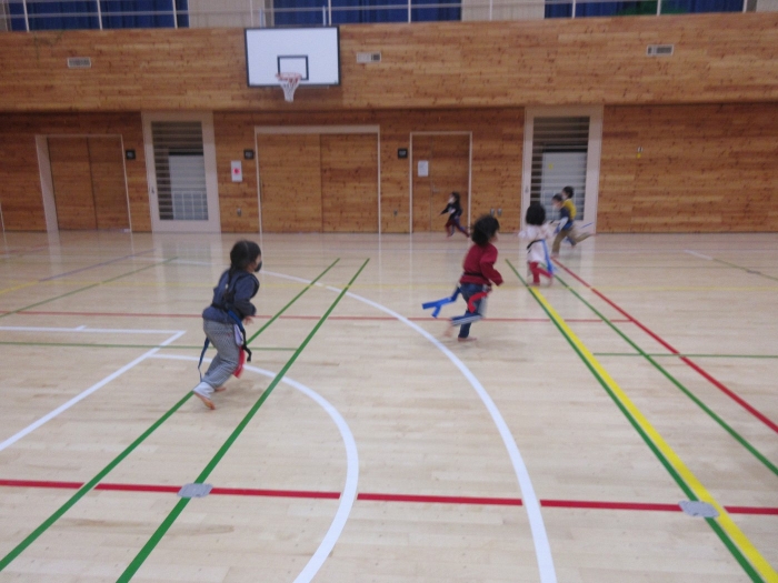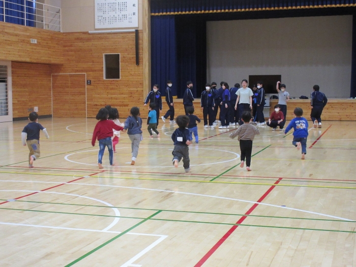 昨日の出来事になりますが、いちごさんが中学校へ遊びに行ってきました。つくしさん・たけのこさんのスケート教室を見学に行く途中で、ちょっとだけ寄り道。中学校では、一年生が体育の授業をしていたのですが、一緒にしっぽ取りをして遊んでくれました。優しく声をかけて接してくれるお兄さんお姉さん達と一緒に遊んで、すっかり仲良くなったようです。中学生の皆さん、いちごさんと一緒に遊んでくれて、ありがとうございました。