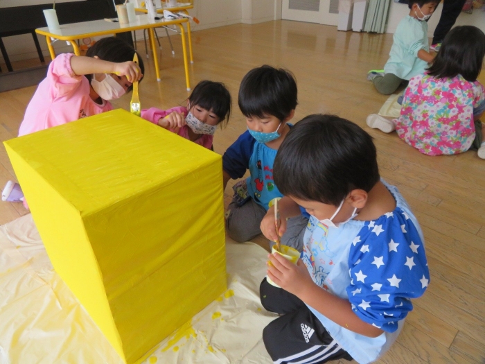 つくしさんは、昨日からお神輿作りが始まりました。絵の具で色塗りをしたり、紙粘土を使いパーツを作ったり、クラスのお友達と一緒に作ることの楽しさを感じながら取り組んでいるようです。どんなお神輿になるのでしょうね。