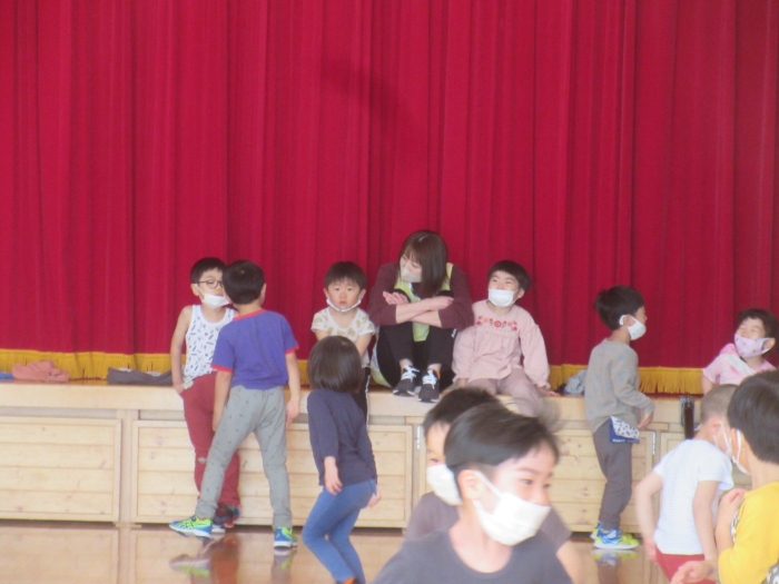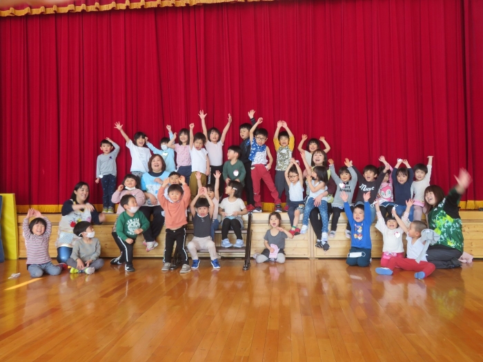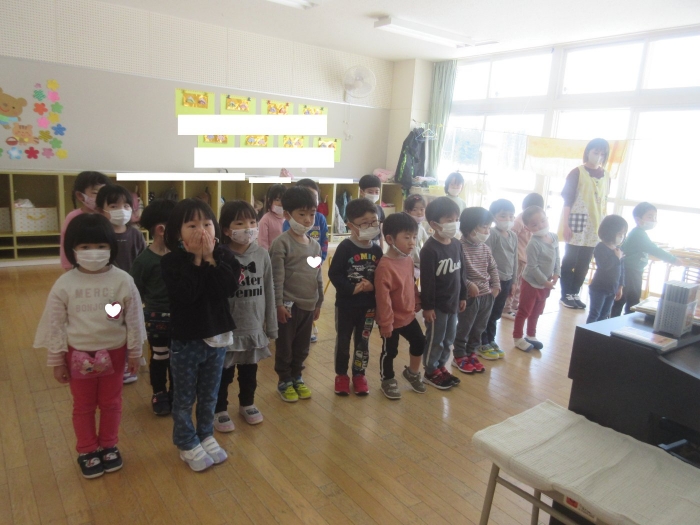 いよいよ明日は卒園式。たけのこさんと遊べる日も今日が最後。朝から子供達や先生方、ほぼ全員でかたきで盛り上がりました。遊ぶ時間が終わりお部屋に入る時、「たくさん遊んでくれてありがとう!」「たけのこさんのこと忘れないでね。」と先生方やお友達に声をかけているたけのこさん達。本当にお別れなんだな…と実感した子が多かったようです。明日は、大好きなたけのこさんを心をこめて送ってあげたいと思います。