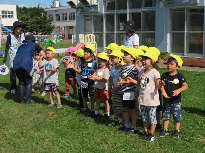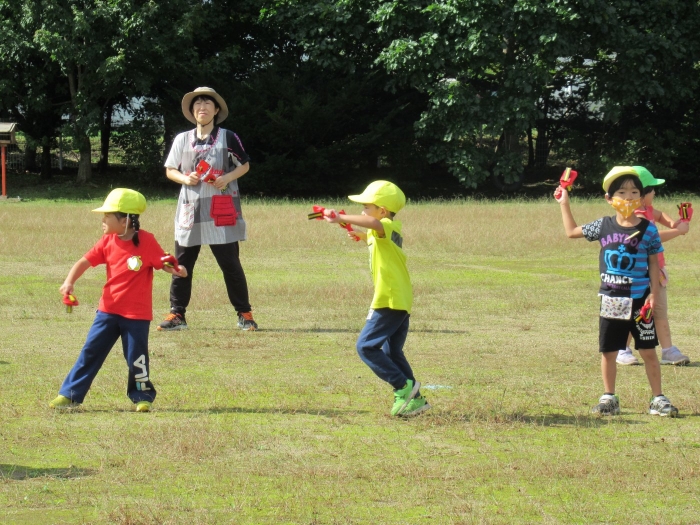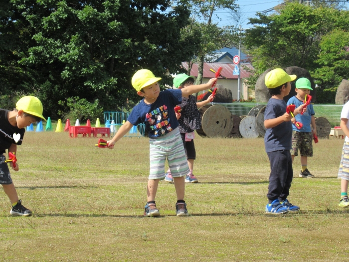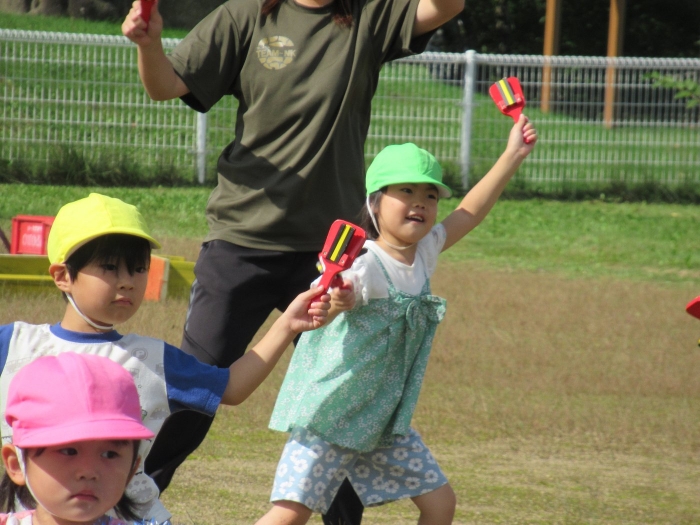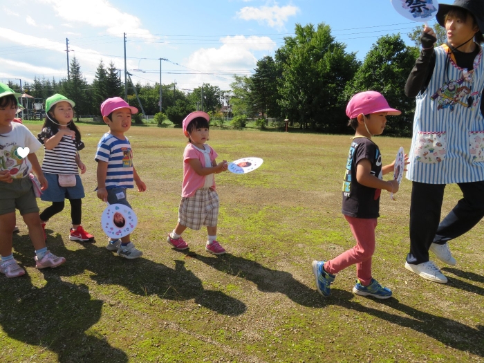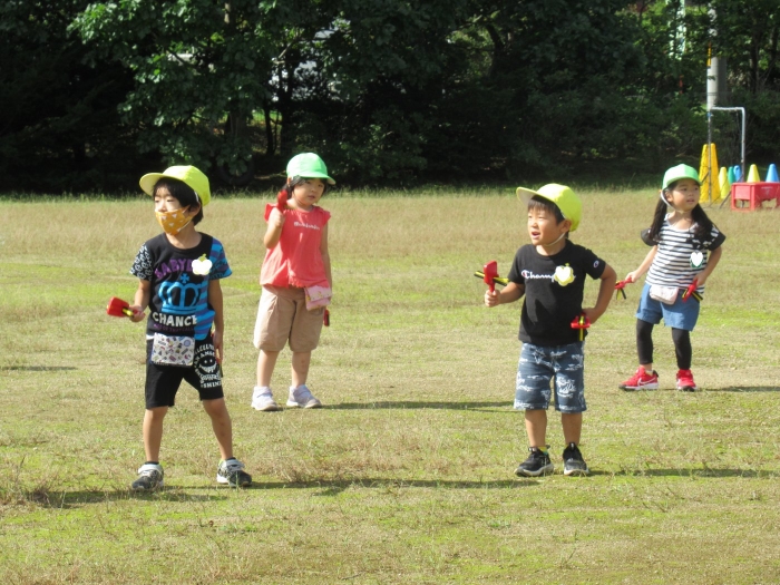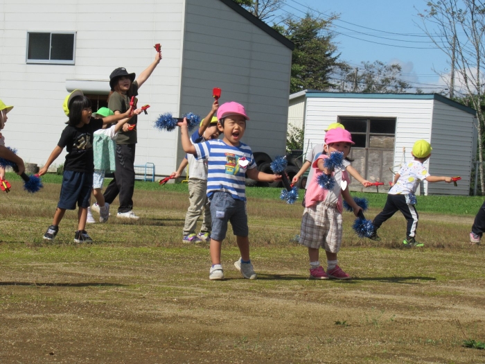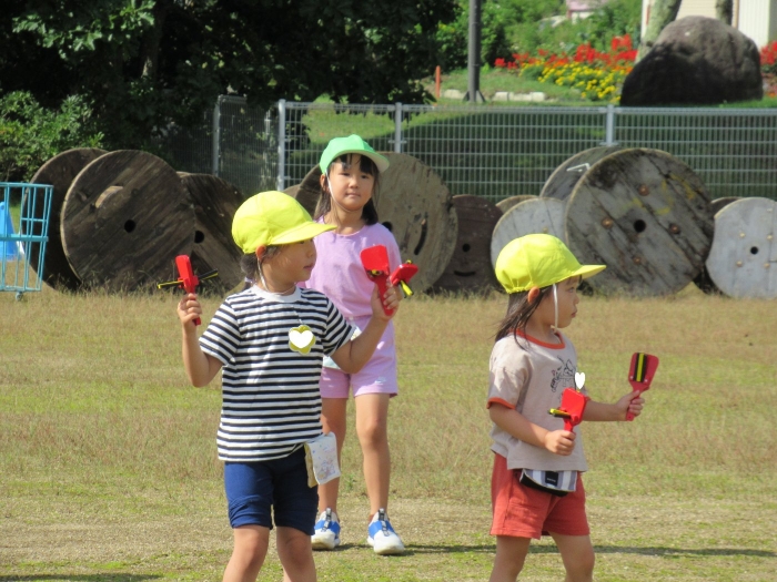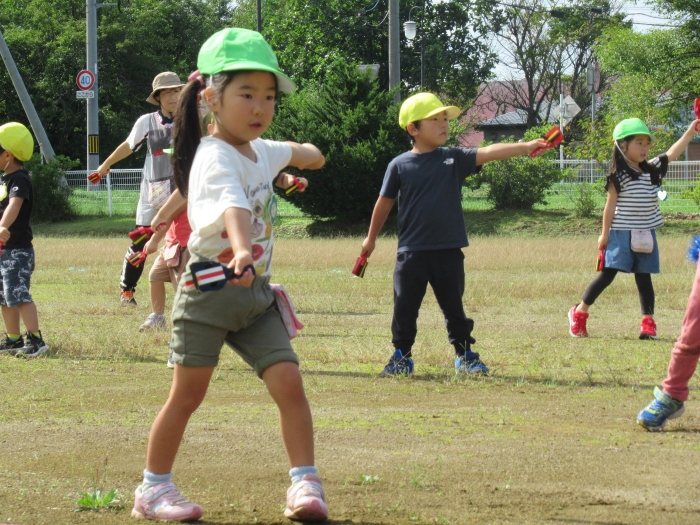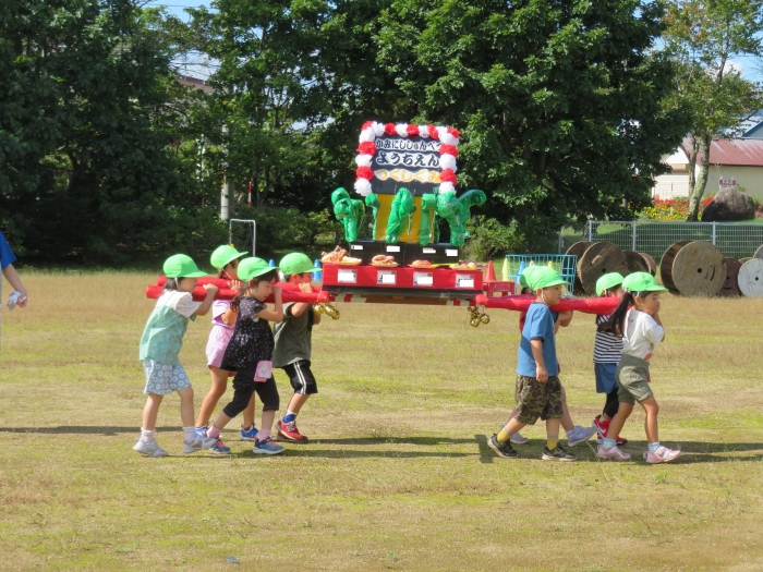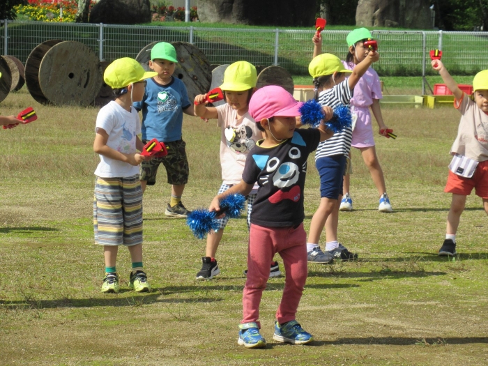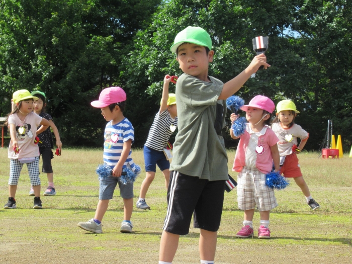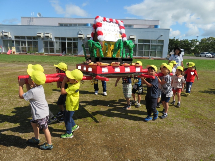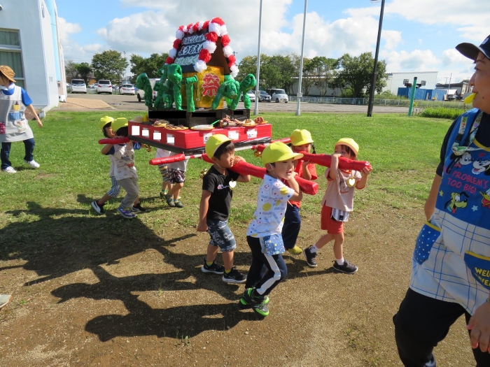 今日は、明後日の神社祭典に向けてグランドで演舞とお神輿を担ぐ練習を行いました。当日も、練習のように元気いっぱいの掛け声と笑顔で踊ったり、クラスのお友達と力を合わせてお神輿を担いだりしてくれることを願っています。観覧してくださる保護者の皆さん、子ども達が緊張せずいつも通りに頑張れるよう、たくさんの手拍子や「わっしょい!わっしょい!」の掛け声のご協力、よろしくお願いいたします。