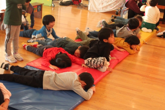 明日は、いよいよ第48回ゆめの会です。天気も心配なさそうで、ひとまずホッとしています。子ども達は、今日もプレイルームで『ドッヂビーかたき』を全力で楽しみ、その後、最後の練習を行いました。遊ぶ時間と、ゆめの会に向けて頑張る時間のメリハリがついていて、子ども達は気持ちの切り替えをしっかりしながら過ごせているようです。
