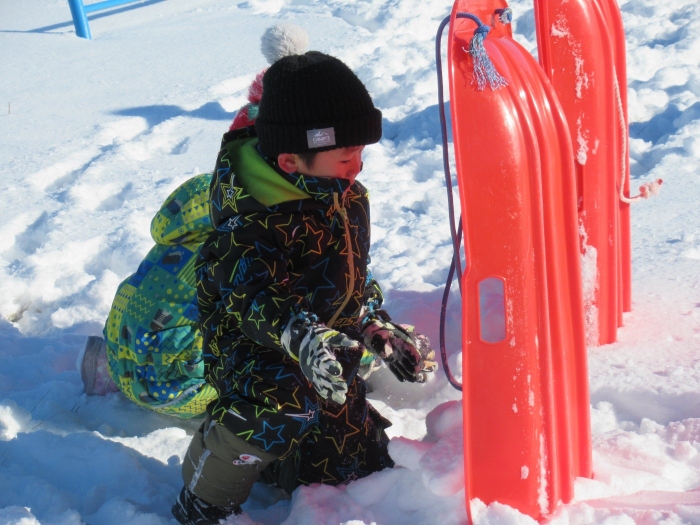 いちごさんは、そり遊び