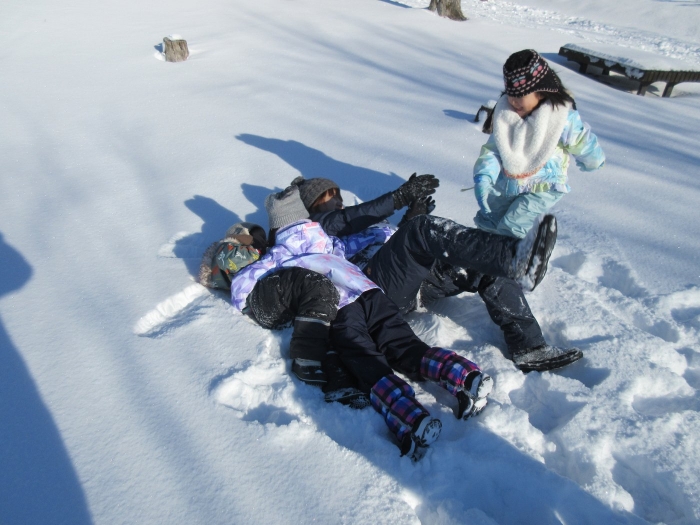 いちごさん、つくしさんは、制作後、雪遊びを満喫しました。