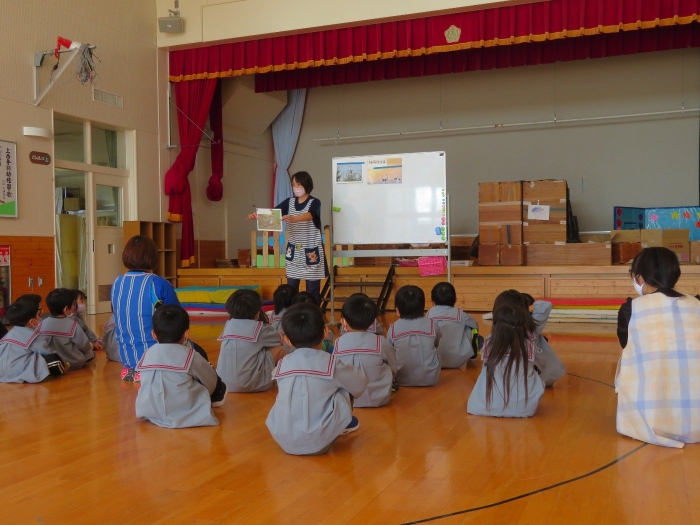 今日のおはよう朝会は、今年幼稚園でよく見かける鳥のお話をしました。子供達なりに見た目や雰囲気から呼び名をつけていたのですが、本当の名前も知ってほしいと思っていました。『恐竜』と呼んでいた鳥は『サギ』、『ペンギン』と呼んでいたのは『ハクセキレイ』という鳥です。たけのこさんは、以前先生方から教えてもらっていたので、覚えている子が多かったようです。よく見かける鳥を身近に感じたり、興味を持ったりするきっかけになるといいなと思っています。