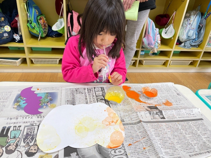 絵の具をストローで吹いて