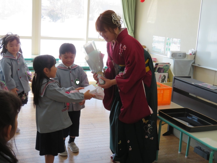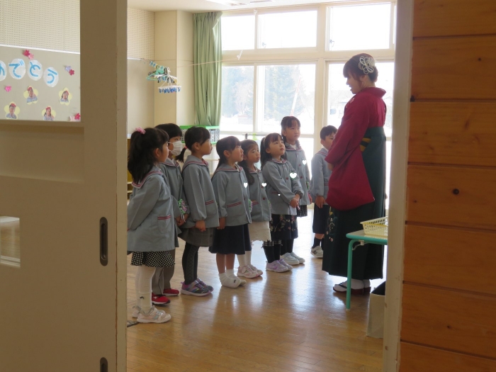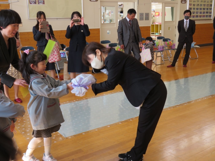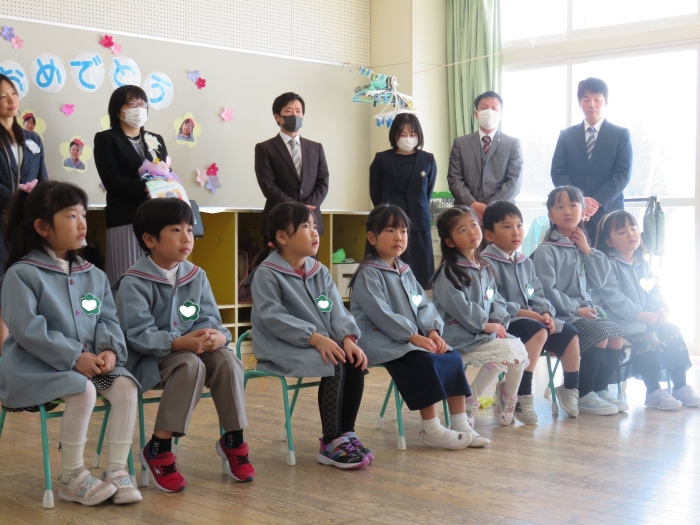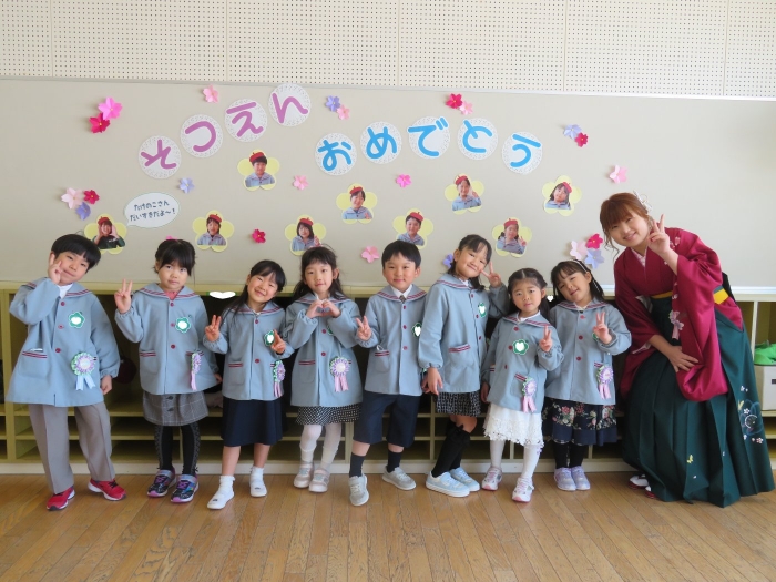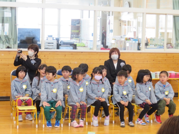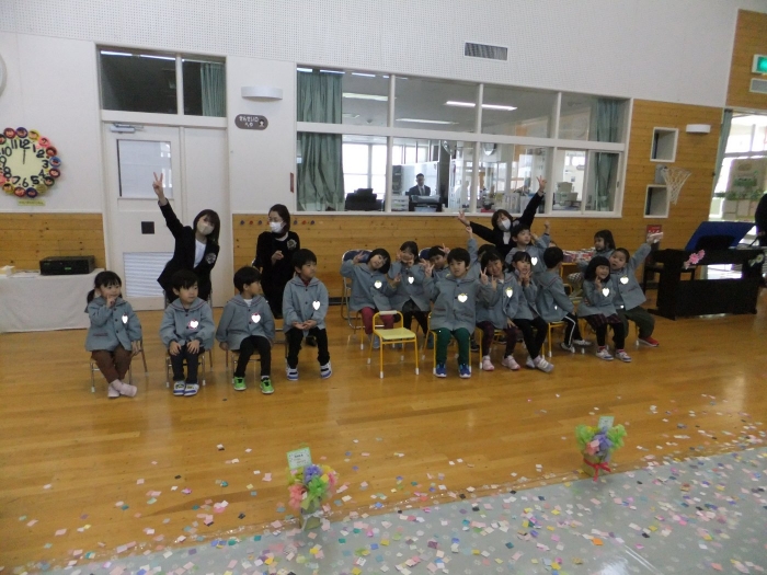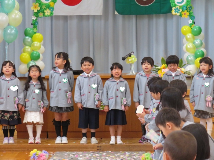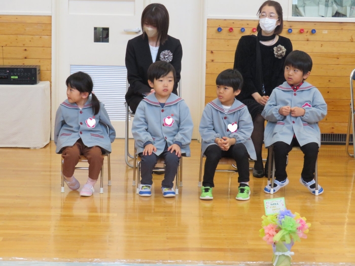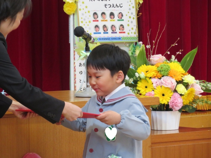 今日は、第48回卒園式でした。とても暖かく、天候に恵まれた中で執り行うことができました。今年度は、4年ぶりに日頃からお世話になっている地域の皆様にもお越しいただくことができ、沢山の方に見守られながら8名の卒園児が旅立っていきました。堂々と花道を歩き卒園証書を受け取る姿は、とても立派でした。つくしさん・いちごさんは、たくさんのお客さんと会場の雰囲気に少し緊張した様子でしたが、送る言葉を元気いっぱいに伝えることができました。長時間でしたが、静かに座り最後まで式に参加している姿に、進級することを実感させてくれましたよ。たけのこさんを思う気持ちが伝わる、とても温かい卒園式でした。たけのこさん、卒園おめでとう!保護者の皆様、3年間たくさんのご協力とご支援、本当にありがとうございました。