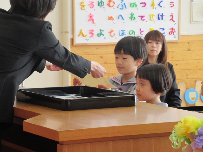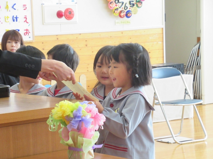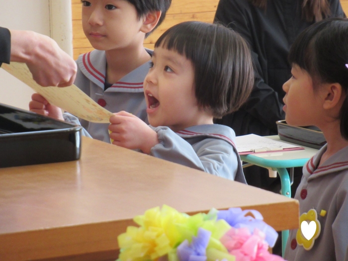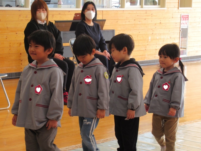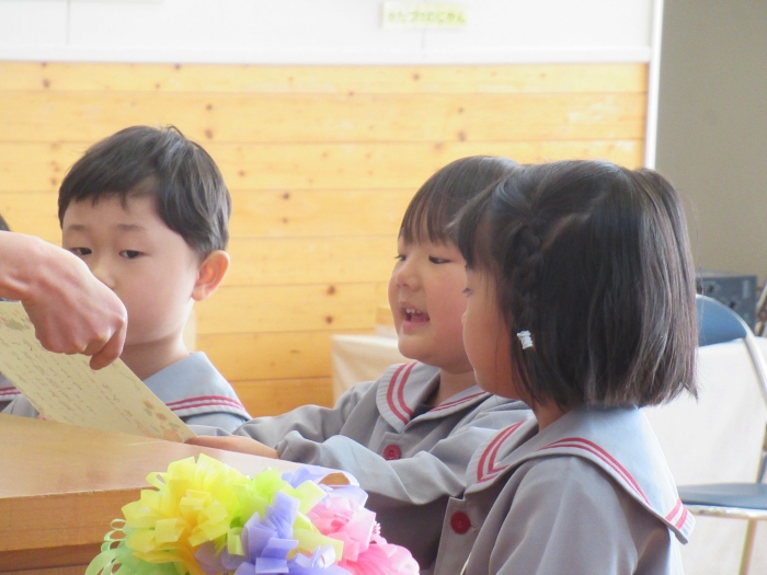 今日で、令和5年度の保育が修了しました。修了式では、一人ずつ修了証書を手渡しました。進級することに喜びを感じながらも、格好良く証書を受け取り成長した姿を見せてくれる子ども達でした。4月からは、一つずつ大きなクラスになりますね。どんなお兄さんお姉さんになって活躍してくれるのか楽しみです。そして、離任する先生はいませんでしたが、つくし組のKちゃん、Nちゃんとお別れすることになりました。2年間一緒に過ごしてきた仲間とのお別れは寂しいですが、離れていてもずっと友達。新しい場所でも元気でいてくださいね。
