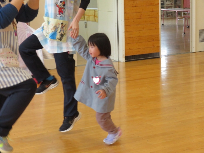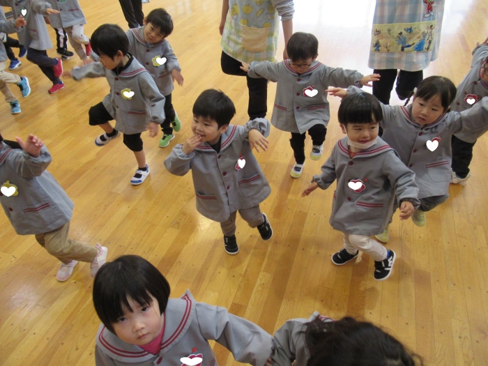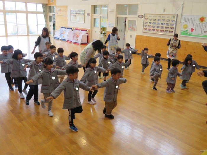 大きな輪になり、みんなでスキップ
