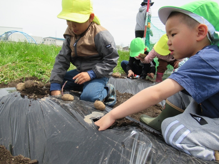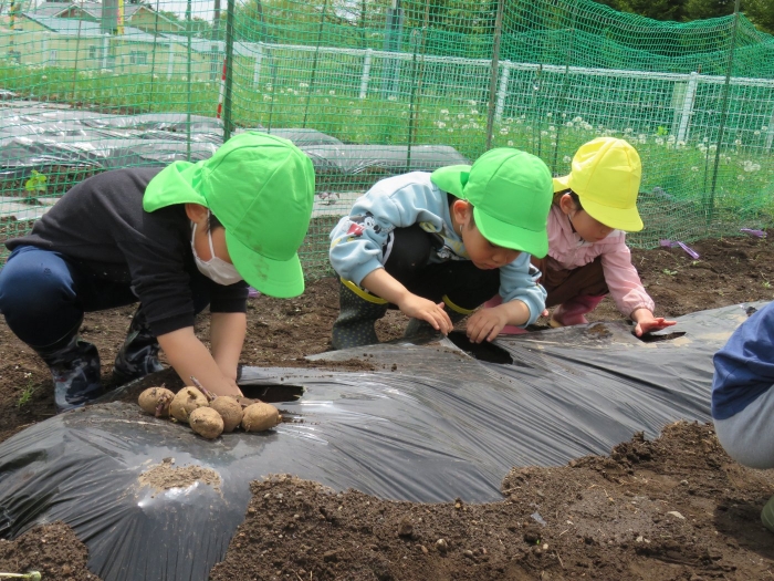 種芋の植え方、よく見ていてね