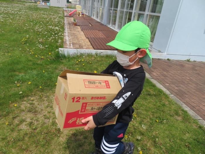 種芋を運んでくれる、たけのこさん