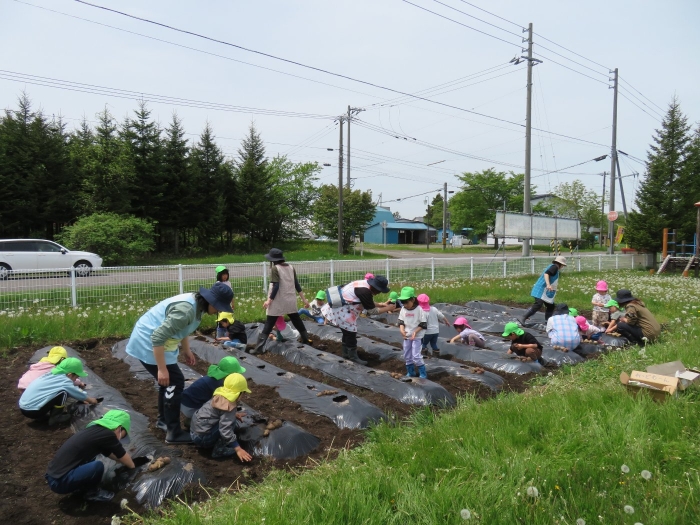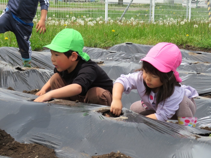 避難訓練終了後は、みんなで芋植えを行いました。
