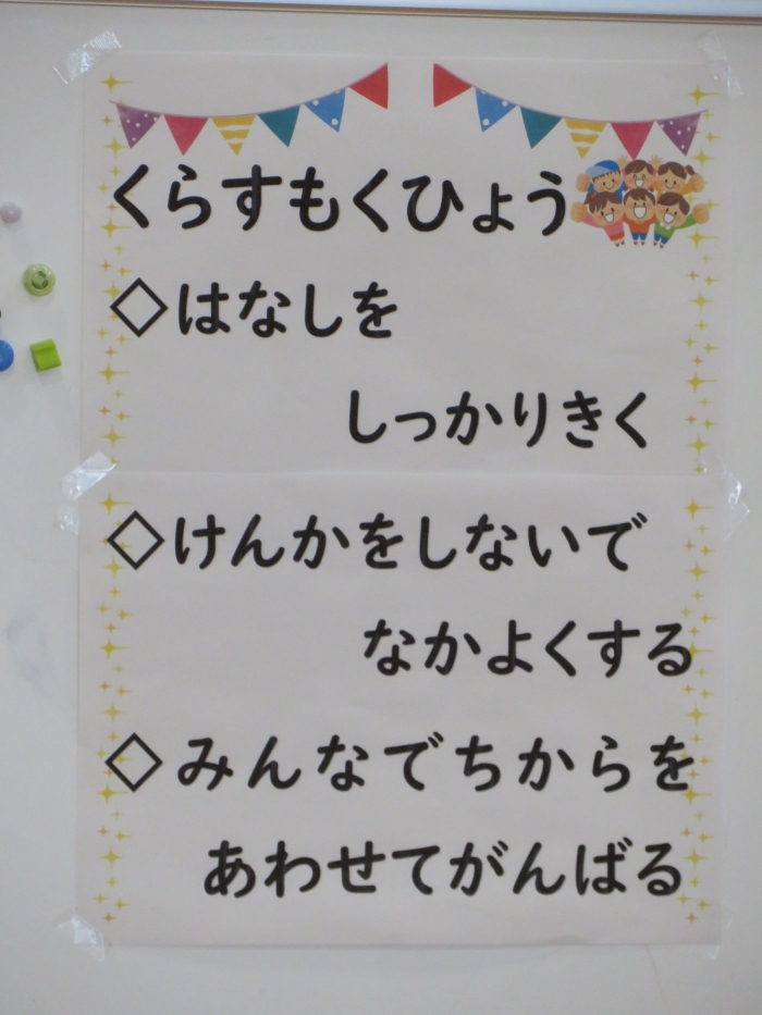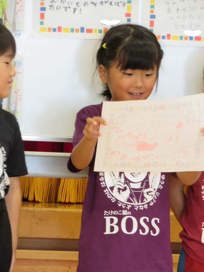 今日は、たけのこ組のお楽しみ会。たけのこさん全員で力を合わせて買い物へ行ったり、調理をしたり、お楽しみのゲームに挑戦したりします。この日のために、何日もかけてリーダー決めや夕食のメニュ―等の話し合いを行ってきました。お楽しみ会の活動を通して、お友達と協力したからできた!、お友達がいたから頑張れた!など、仲間と協力して活動することの楽しさや充実感を感じてほしいと思っています。さて、今年のたけのこさんは、どんなお楽しみ会になるのでしょう。
