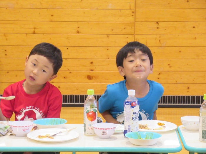 夕食後は、お楽しみゲーム。このゲームは、12名全員が協力しないとゴールにたどりつけません。どんなゲームだったのかは、お子さんに聞いて見てくださいね。