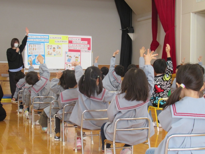 今日から第3学期が始まりました。冬休み中は、様々な風邪が流行していたので子ども達の体調が心配でしたが、みんな元気に登園してくれて安心しました。始業式では、各クラス3学期に頑張ってほしいことについてお話しました。3学期の登園は、たけのこ組は42日間、つくし組・いちご組は46日間。あっという間ですね。まとめの3学期、卒園・進級を楽しみにしながら意欲的に過ごしてほしいと思います。保護者の皆様、3学期もどうぞよろしくお願いいたします。