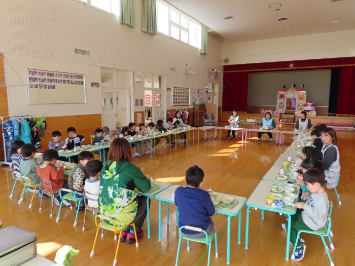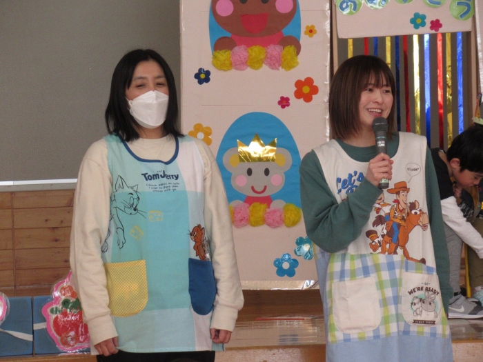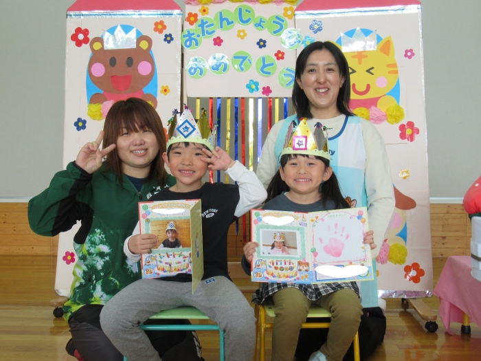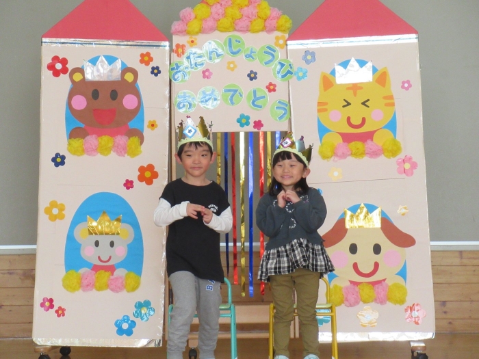 昨日は3月の誕生会、たけのこさん1名、つくしさん1名のお祝いでした。始まる前から、にこにこ笑顔でとても嬉しそうな誕生児さん達。二人とも毎月お友達をお祝いしながら、自分がステージに上がる日を心待ちにしていたでしょうね。今年度最後の誕生会、歌も全力で歌ってお祝いしました。今日のお楽しみは、フルーツバスケット。自分の果物がいつ呼ばれるのかな…とドキドキしながら大盛り上がりで楽しみました。