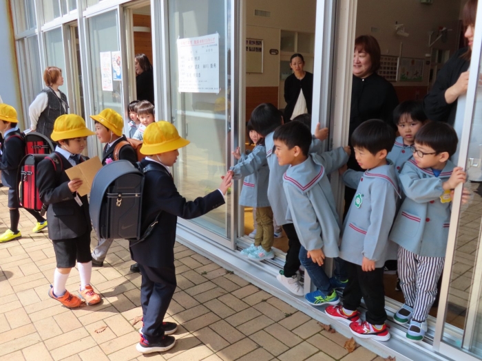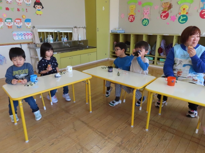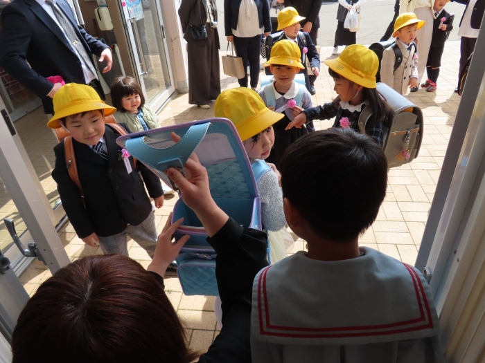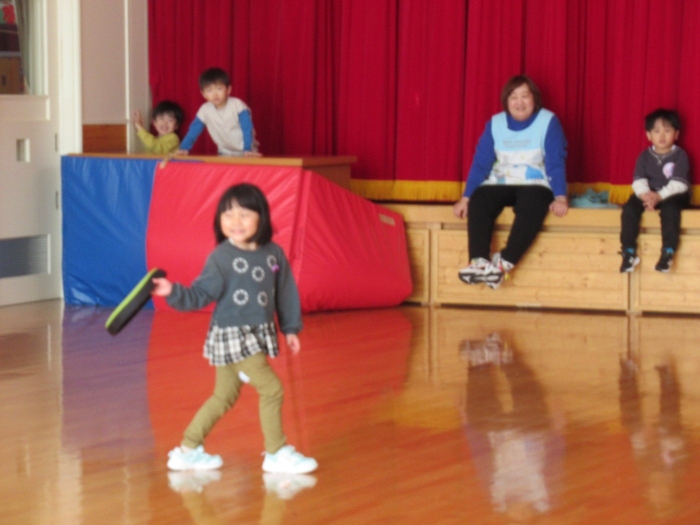 久しぶりの幼稚園、友達や先生との再会を喜んだり、新しい保育室環境にドキドキ・わくわくしながらぐるりと探検したりしていました。新年度の大荷物を片付け終えると、さっそく友達と誘い合いながら慣れ親しんだ『ドッチビーかたき』を満喫! 新しく来た先生に、熱血指導している子もいましたよ! 担任や保育室環境が代わり、ちょっぴり緊張の面持ちの子もいましたが、言葉を交わしたり一緒に遊んだりしていく中で、少しずつ打ち解けていく様子がありました。