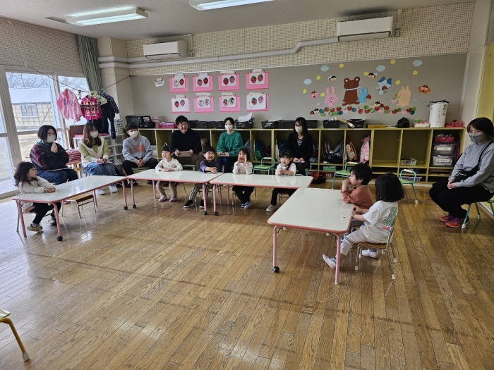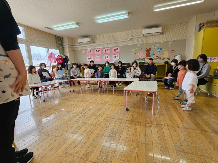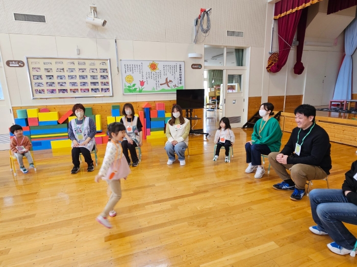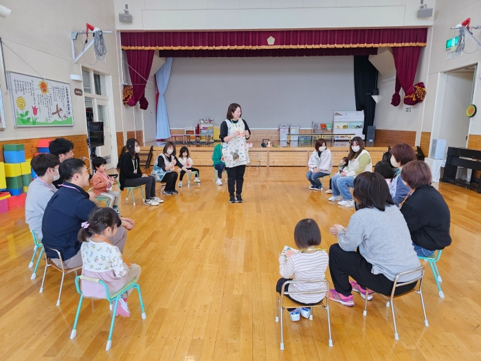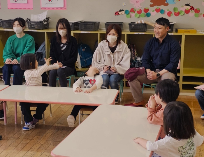 終始あたたかな眼差しで保育を参観・参加し、我が子以外にも声を掛けてくださる保護者の皆様のほのぼの雰囲気が、子ども達の心をほぐしてくれたなと感じました。本当にありがとうございます。アンケートでは、お子さんが幼稚園で楽しく過ごしていることへの安心感、職員の関りに対する温かなお言葉を寄せていただき、とても嬉しく思いました。家庭訪問では、お子さんの育ちや今後への願いについて、じっくりお話ができればと思います。