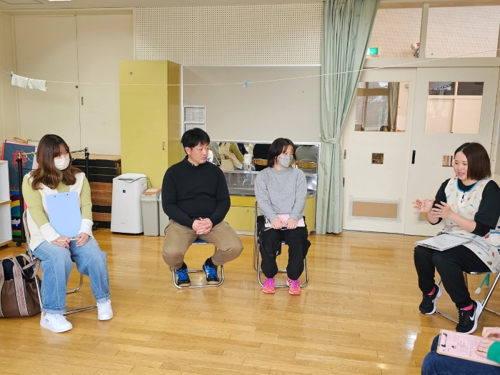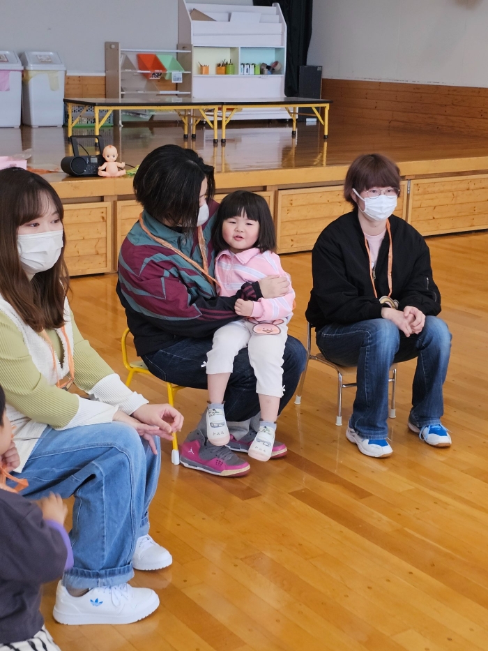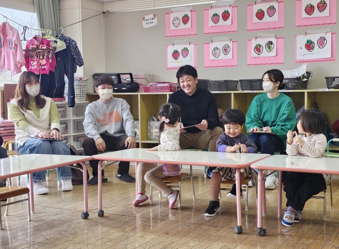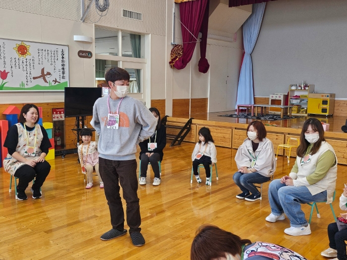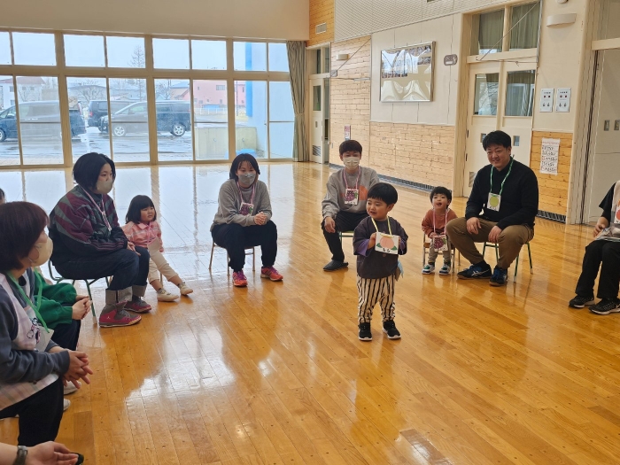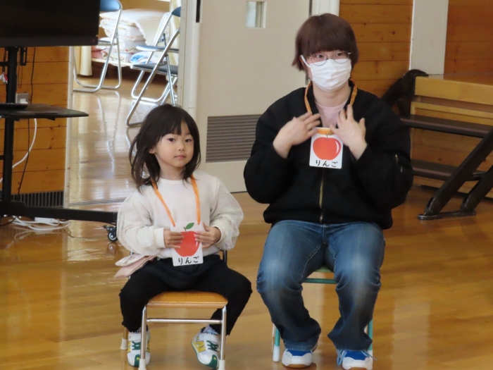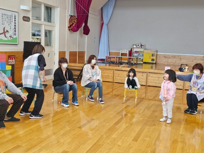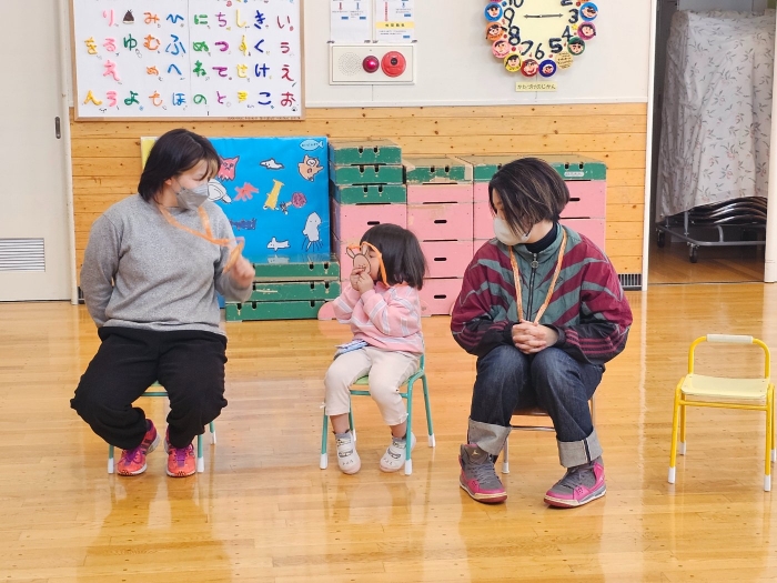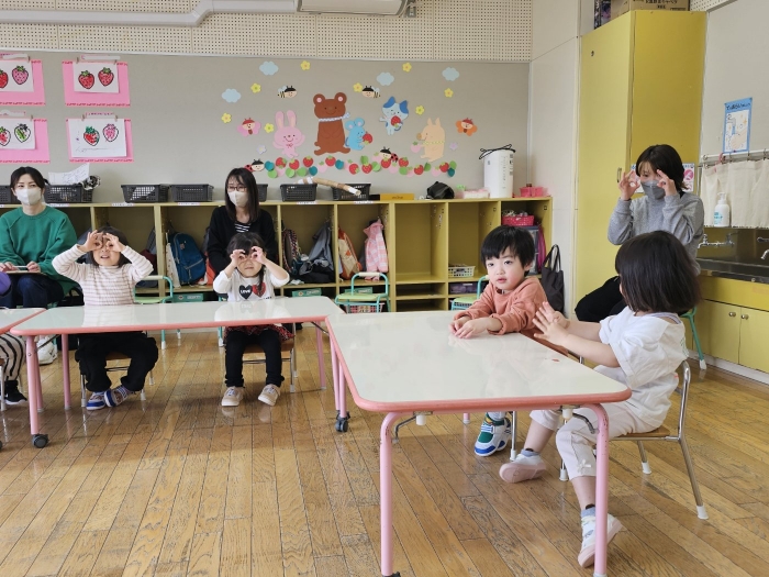 「○○マークの○○ちゃん!」 手遊びを楽しみながら、友達のマークも名前も覚え始めました