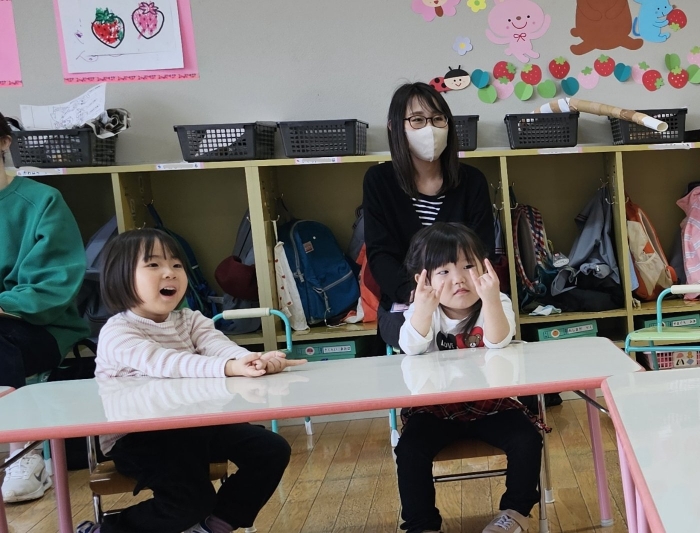 毎日楽しんでいる出席確認の手遊び『ぼうがいっぽん』、お家の人がいてルンルン・ノリノリがup⤴