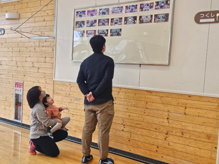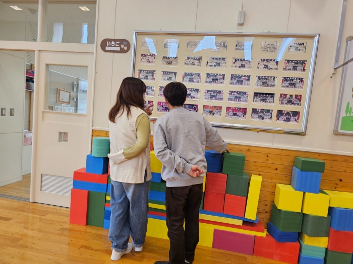 トイレ休憩の間、掲示してる歴代の卒園児写真を眺める方の姿が…