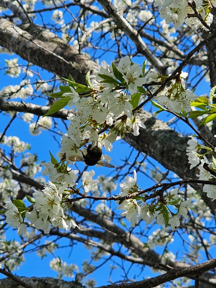 ミツバチが飛び交い、蜜集めに精を出していました