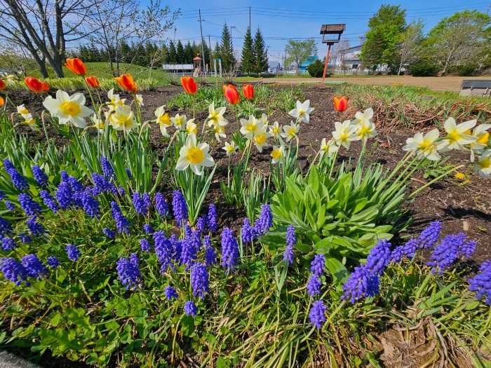 花壇のスイセン、ムスカリ、チューリップも、綺麗に咲き誇りました