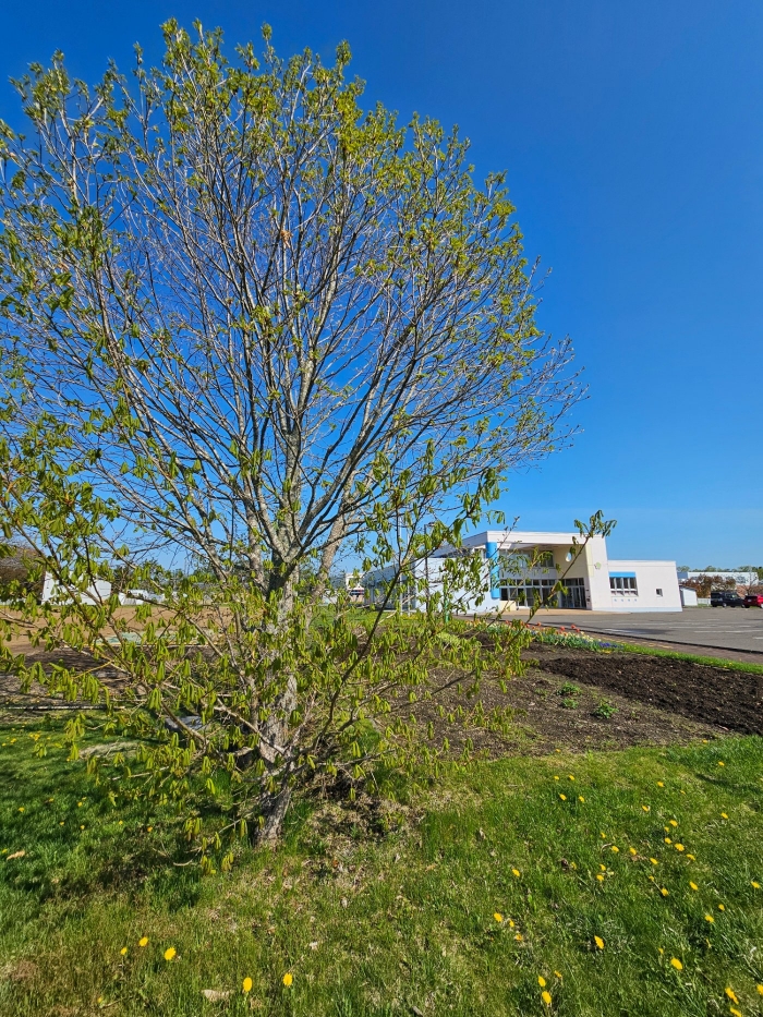 花壇横のドングリの木も若葉が青々と!